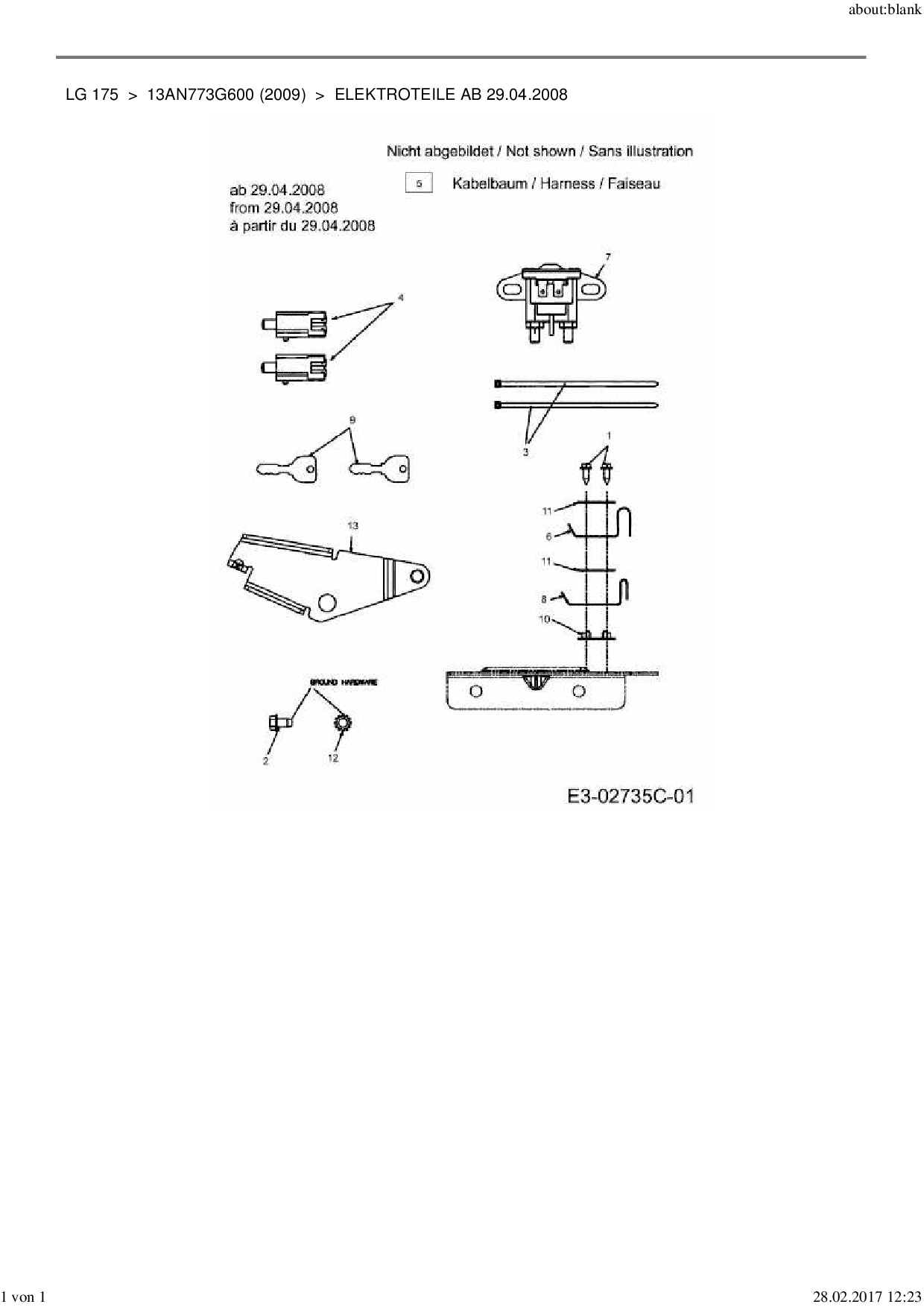 Ersatzteile für Rasentraktor MTD LG 175 aus der Zeichnung Elektroteile ab 29.04.2008: