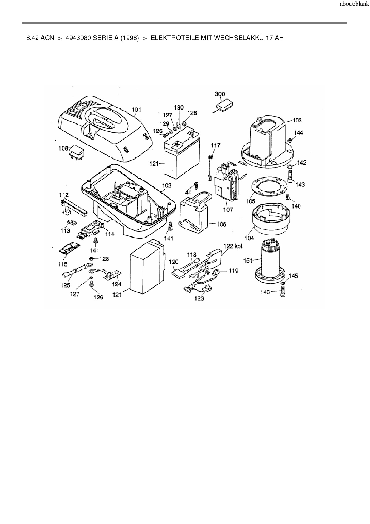 Ersatzteile für Akkumäher Wolf-Garten 6.42 ACN aus der Zeichnung Elektroteile mit Wechselakku 17 AH: