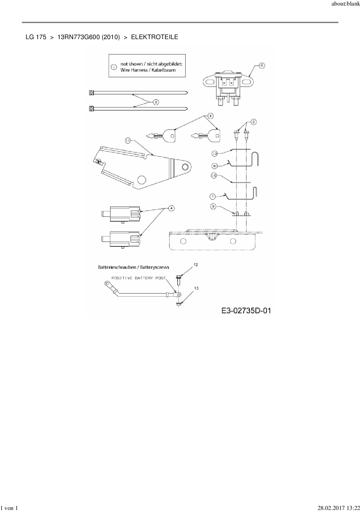 Ersatzteile für Rasentraktor MTD LG 175 aus der Zeichnung Elektroteile: