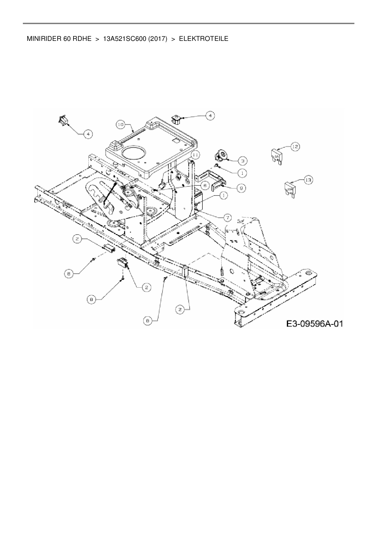 Ersatzteile für Rasentraktor MTD Minirider 60 RDHE aus der Zeichnung Elektroteile: