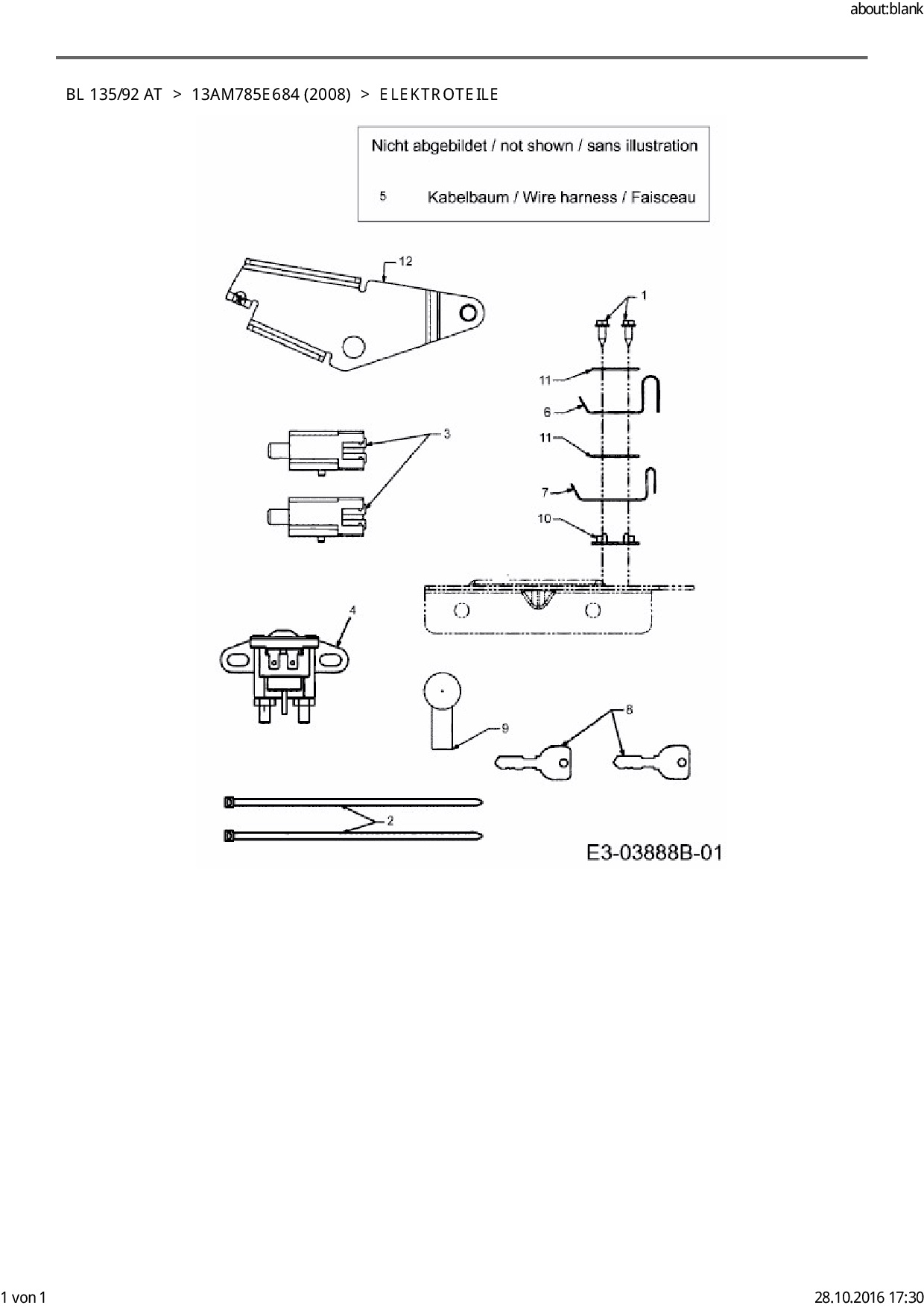 Ersatzteile für Rasentraktor Bolens BL 135/92 AT aus der Zeichnung Elektroteile: