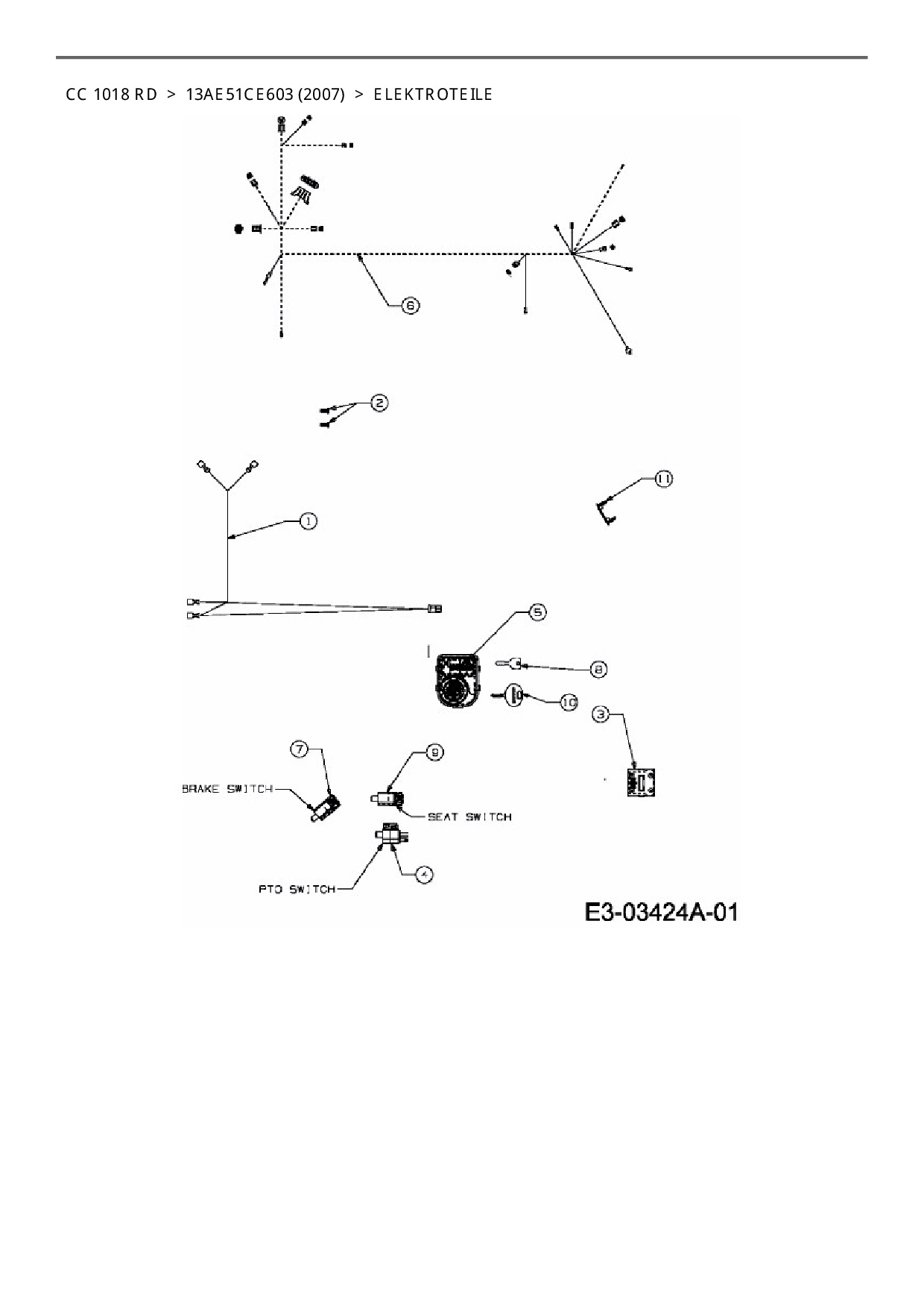 Download Ersatzteil-Zeichnung Cub Cadet CC 1018 RD Zeichnung Elektroteile (PDF-Format)