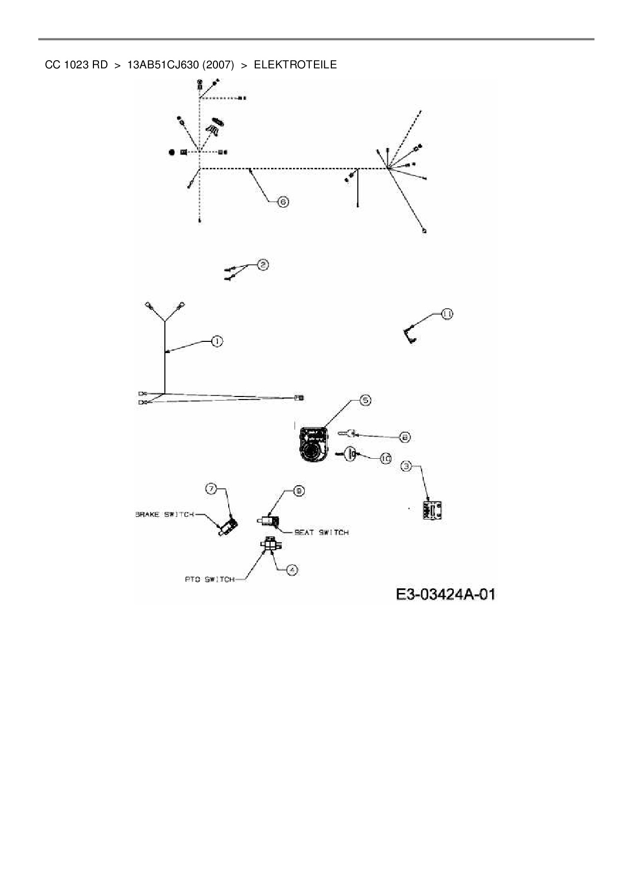 Ersatzteile für Rasentraktor Cub Cadet CC 1023 RD aus der Zeichnung Elektroteile: