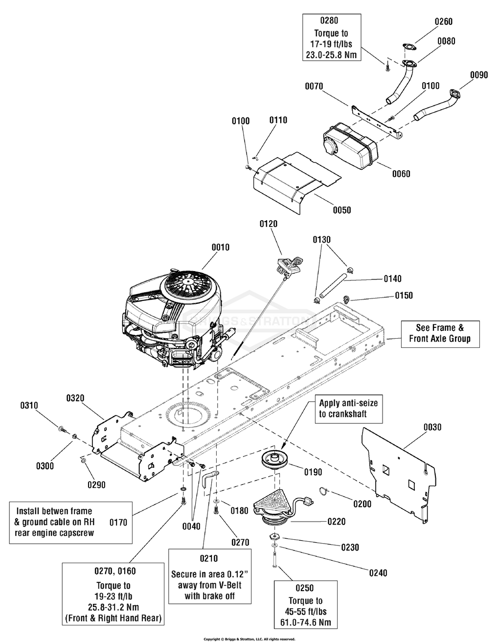 Zeichnung Snapper 2690980/130.280120 - LT2452, 52" 24 HP Lawn Tractor LT200 Series aus der Zeichnungsgruppe Engine Group - 24HP Briggs & Stratton EFM Twin Professional Series: