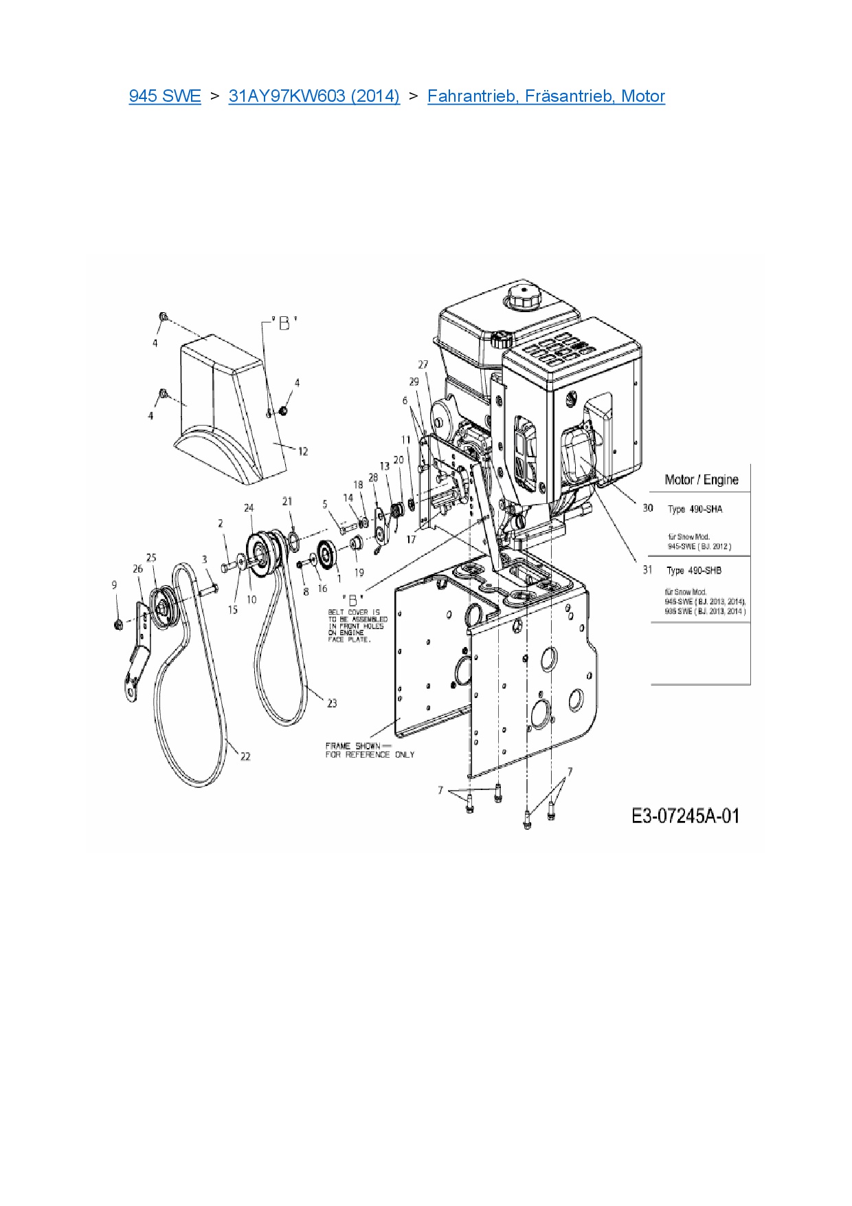 Ersatzteile für Schneefräse Cub Cadet 945 SWE aus der Zeichnung Fahrantrieb, Fräsantrieb, Motor: