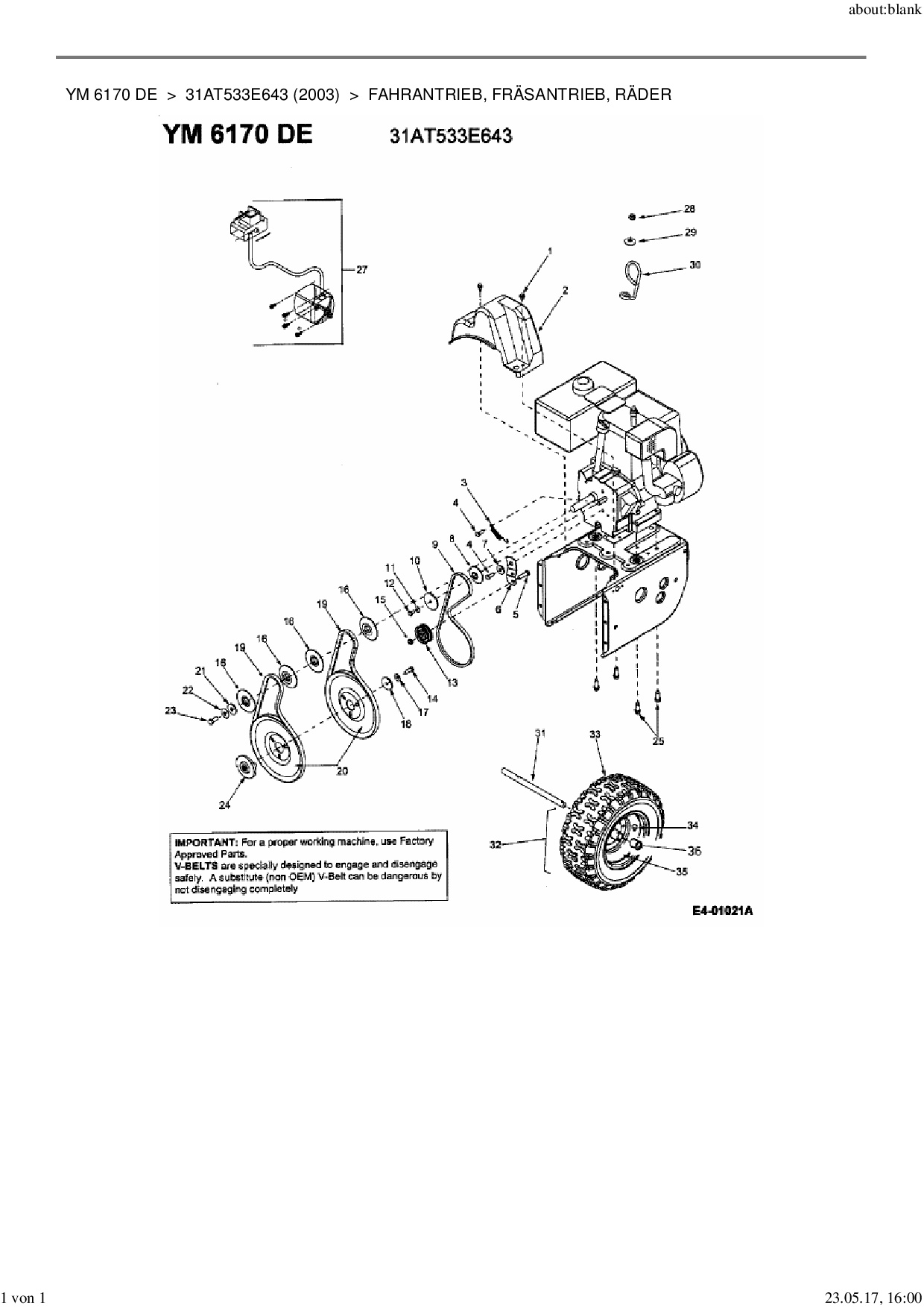 Ersatzteile für Schneefräsen Yard-Man YM 6170 DE aus der Zeichnung Fahrantrieb, Fräsantrieb, Räder: