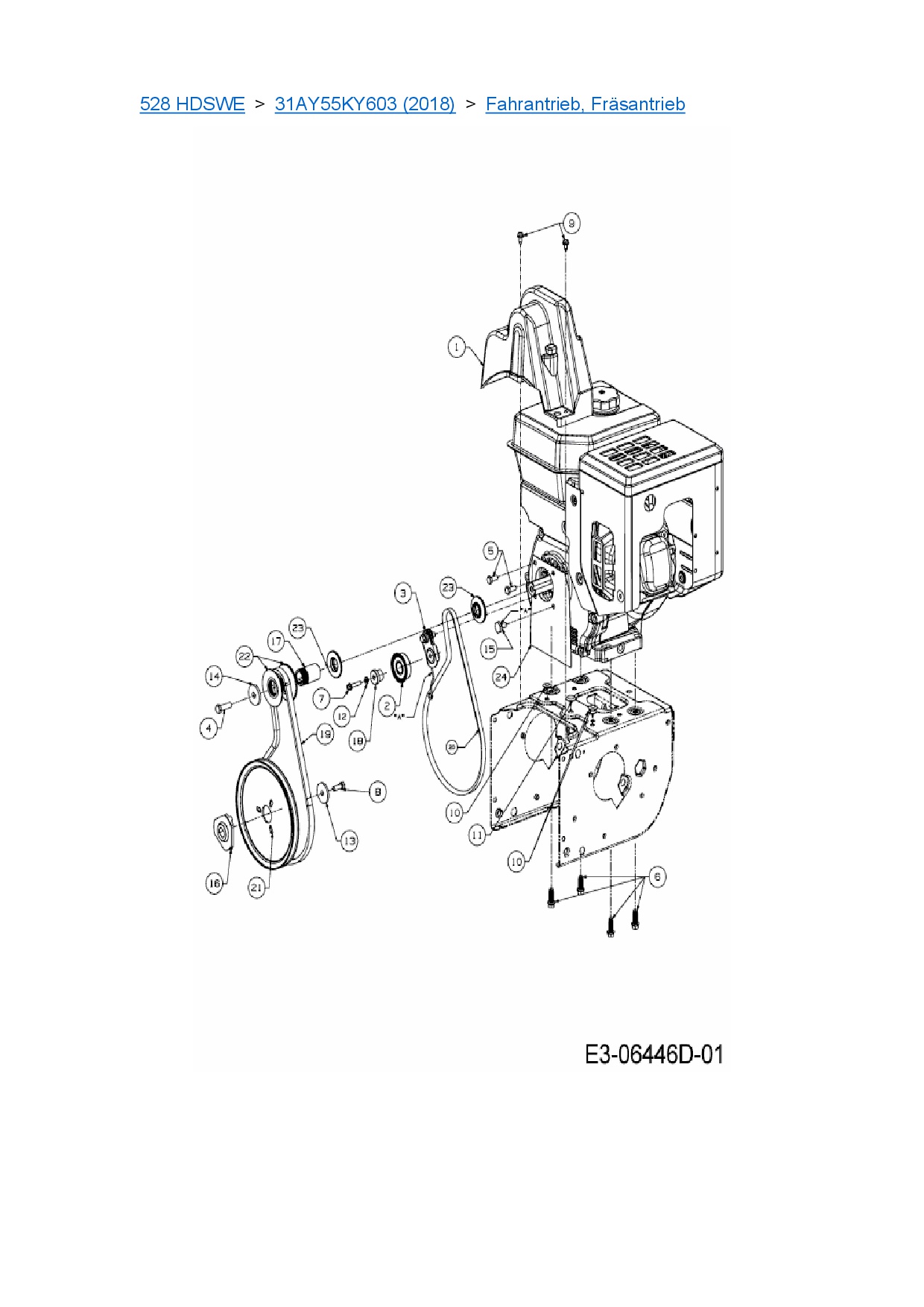 Ersatzteile für Schneefräse Cub Cadet 528 HDSWE aus der Zeichnung Fahrantrieb, Fräsantrieb: