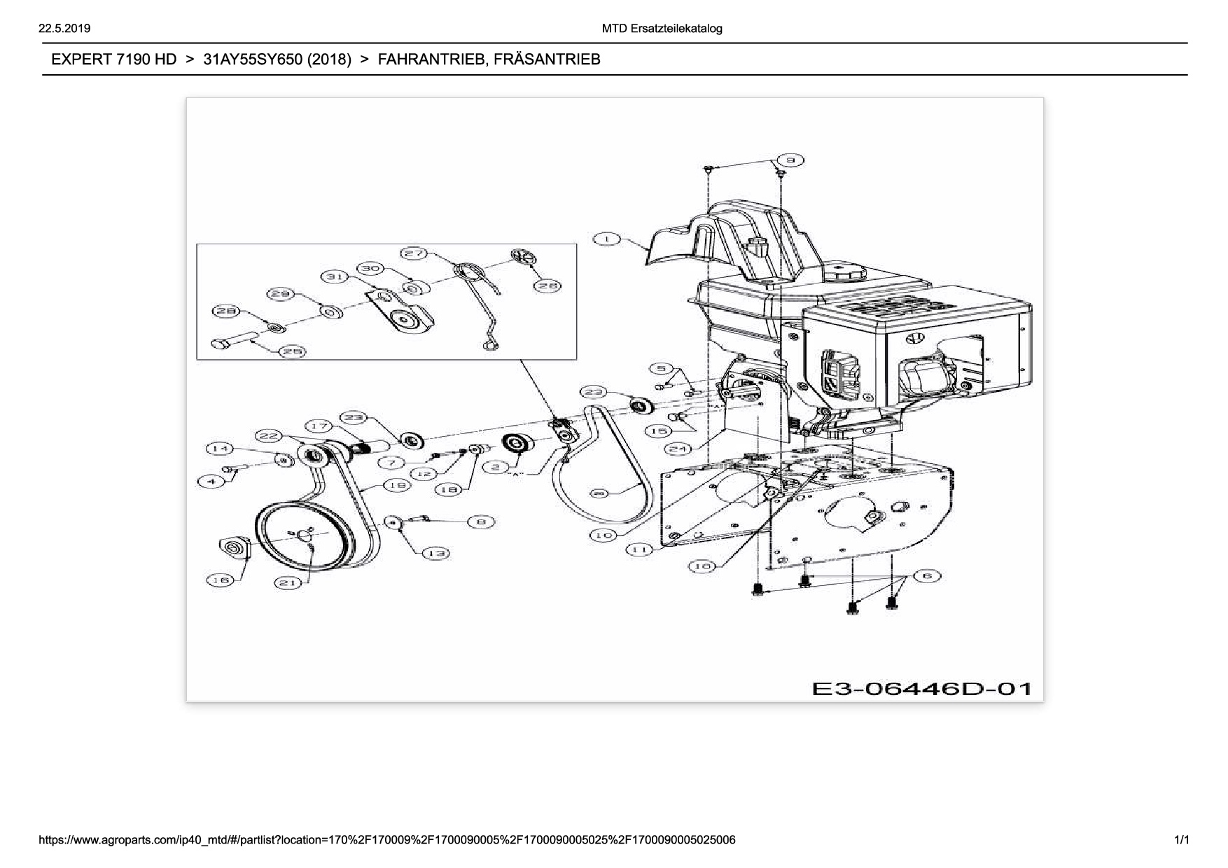 Ersatzteile für Schneefräse Wolf-Garten Expert EXPERT 7190 HD aus der Zeichnung Fahrantrieb, Fräsantrieb: