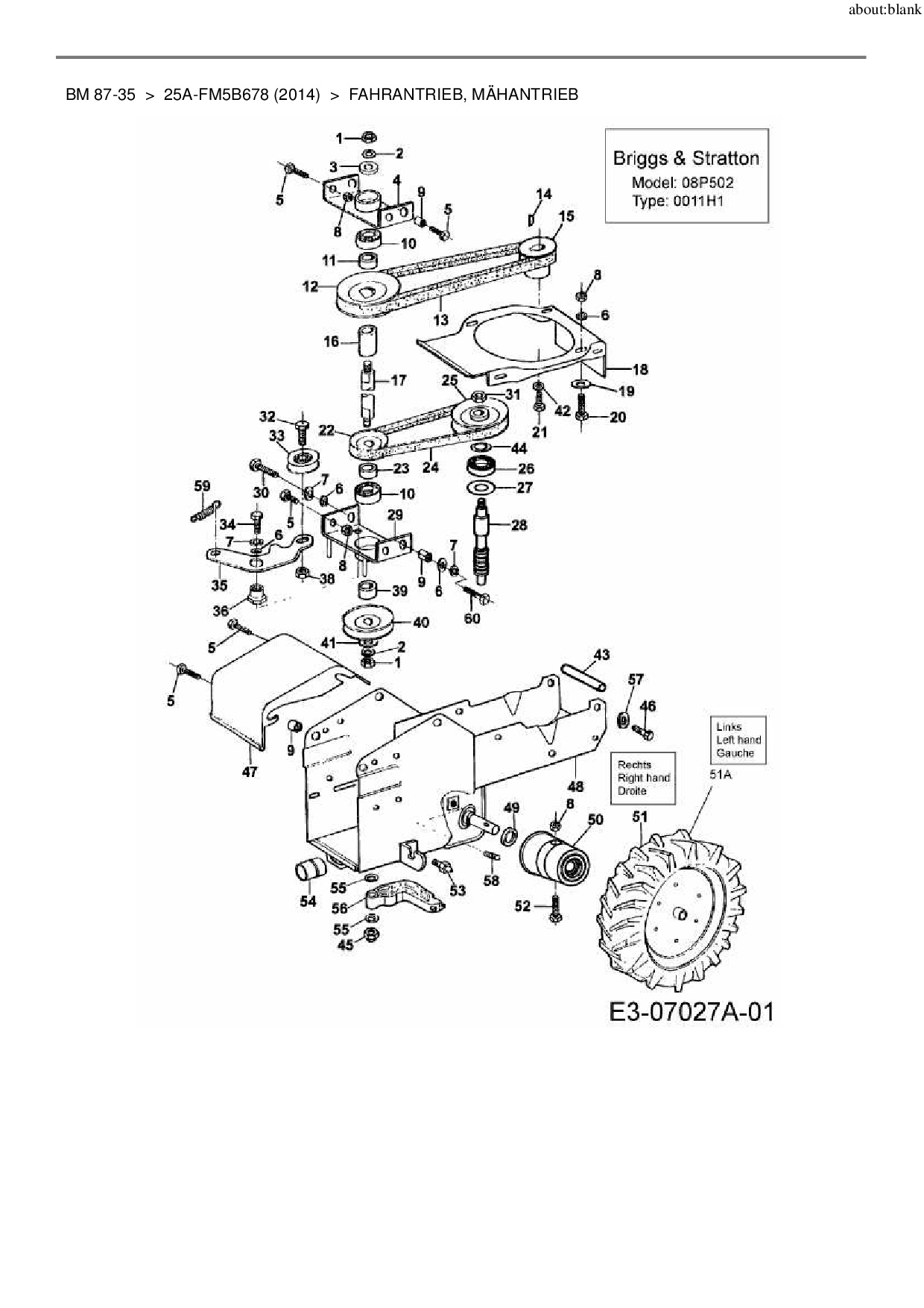 Download Ersatzteil-Zeichnung MTD BM 87-35 Zeichnung Fahrantrieb, Mähantrieb (PDF-Format)