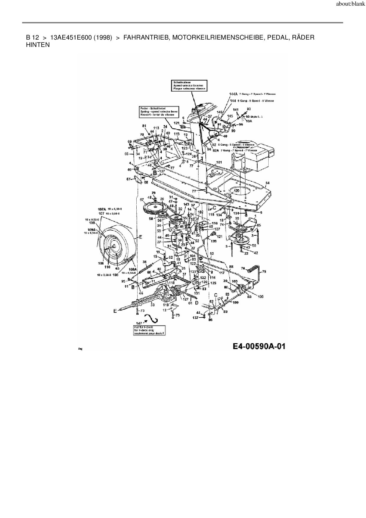 Ersatzteile für Rasentraktor MTD B 12 aus der Zeichnung Fahrantrieb, Motorkeilriemenscheibe, Pedal, Räder hinten: