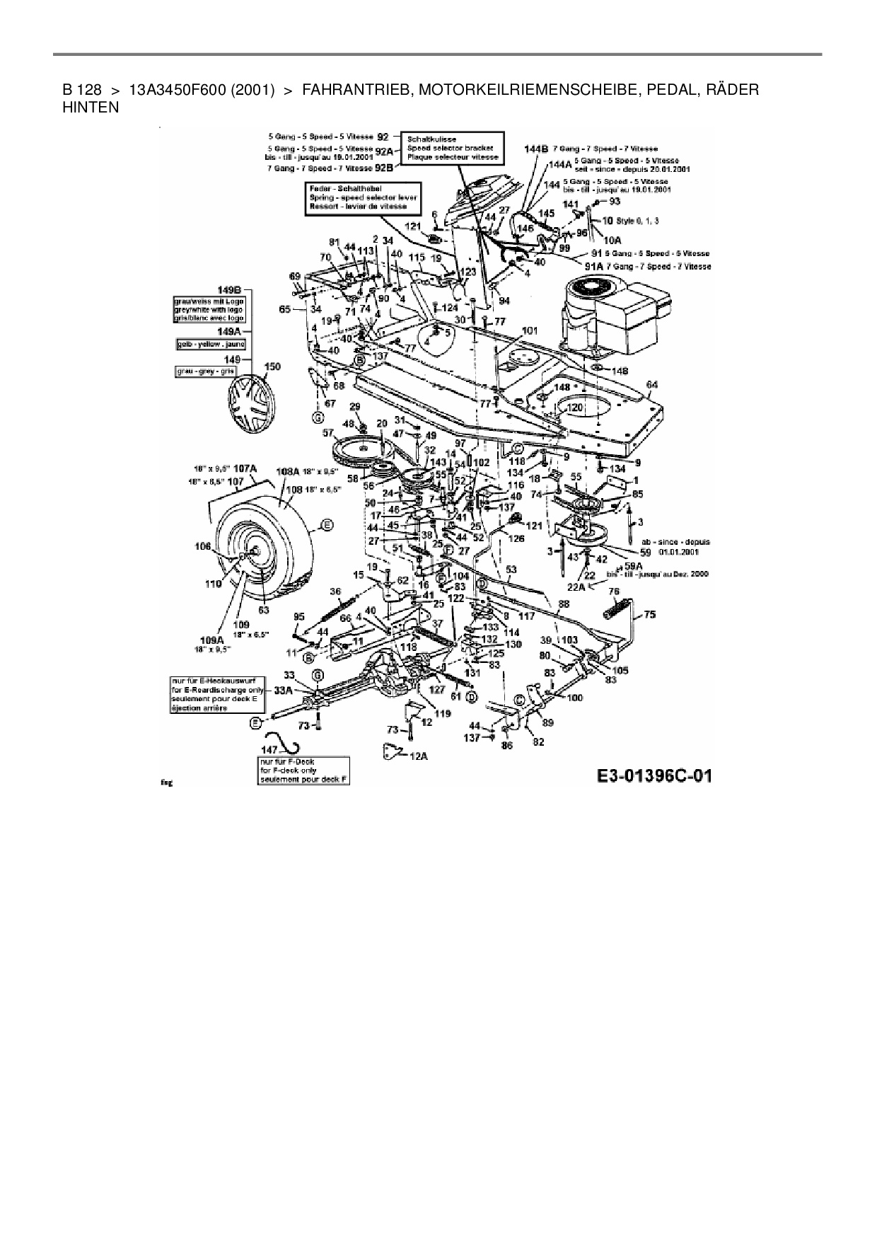 Zeichnung für MTD Rasentraktor B 128 mit der Geräte-Artikelnr. 13A3450F600 ab Baujahr 2001: