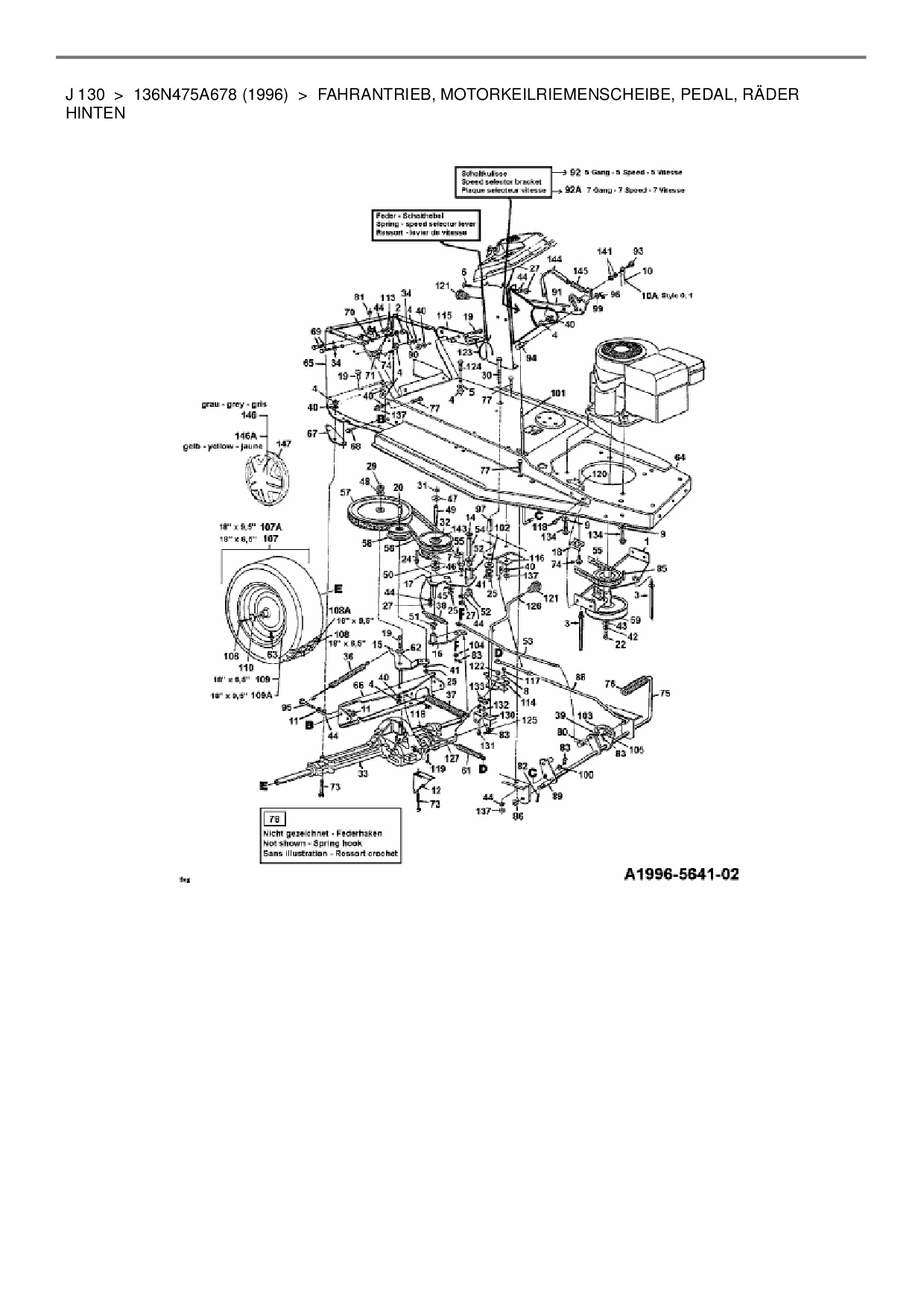Zeichnung für MTD Rasentraktor J 130 mit der Geräte-Artikelnr. 136N475A678 ab Baujahr 1996: