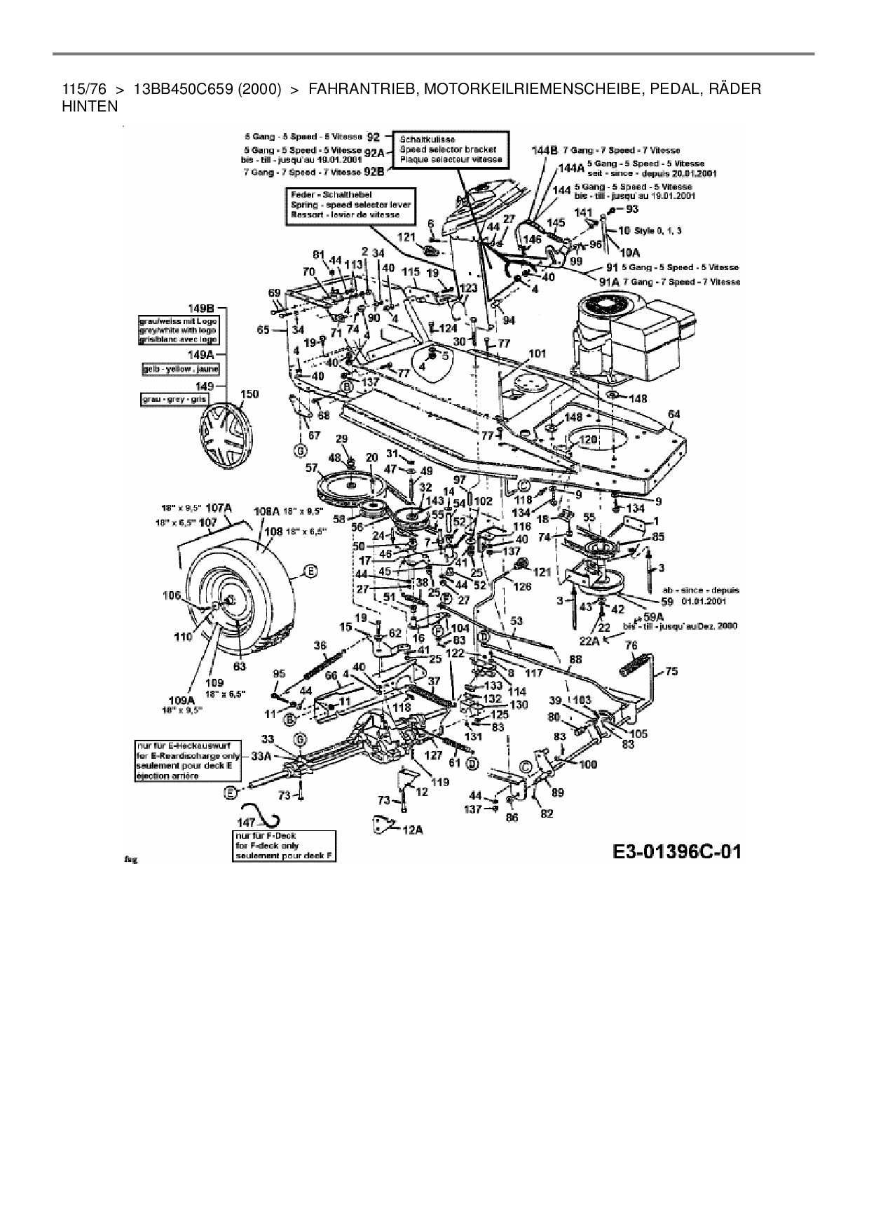 Zeichnung für Mastercut Rasentraktor 115/76 mit der Geräte-Artikelnr. 13BB450C659 ab Baujahr 2000: