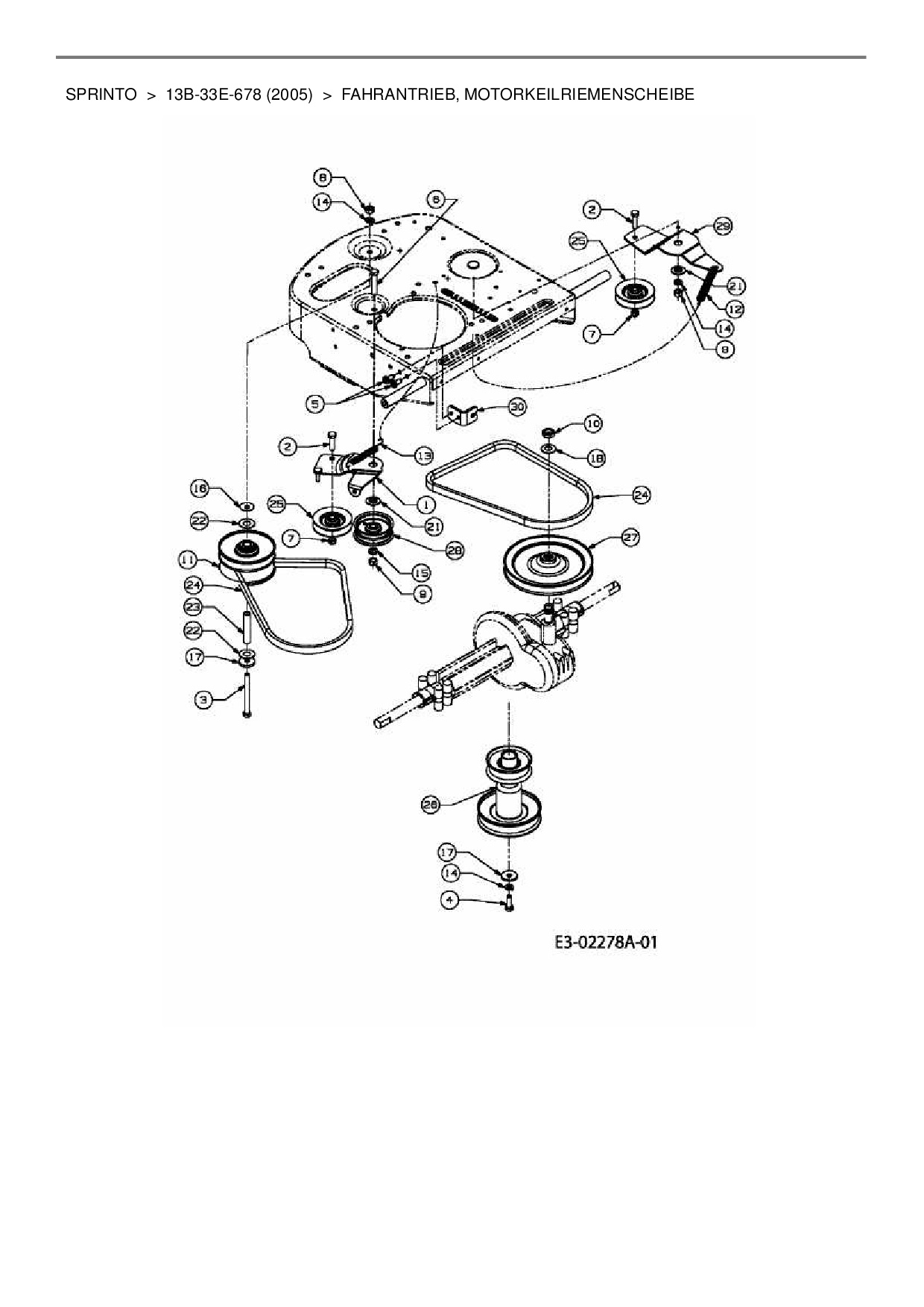 Ersatzteile für Rasentraktor MTD Sprinto aus der Zeichnung Fahrantrieb, Motorkeilriemenscheibe: