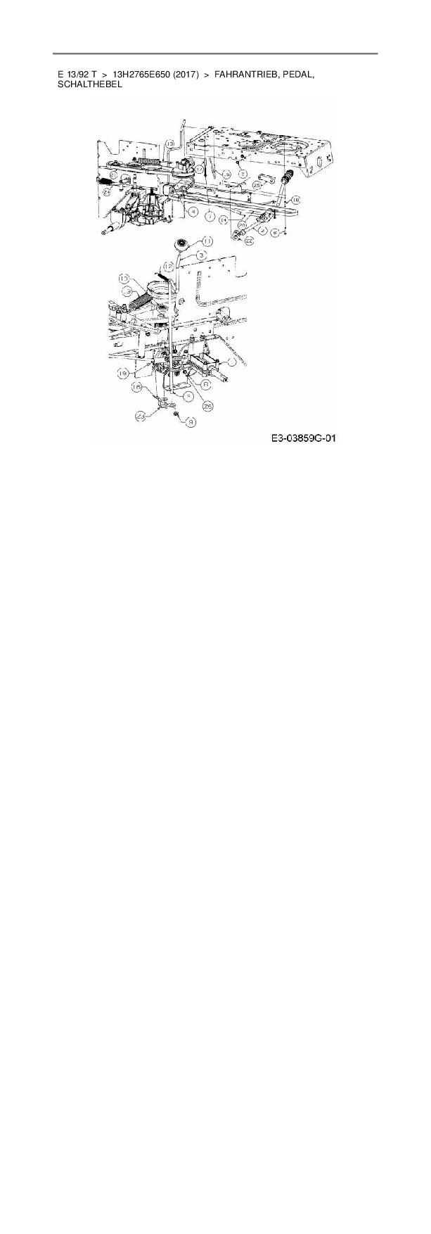 Ersatzteile für Rasentraktor Wolf-Garten E 13/92 T aus der Zeichnung Fahrantrieb, Pedal, Schalthebel: