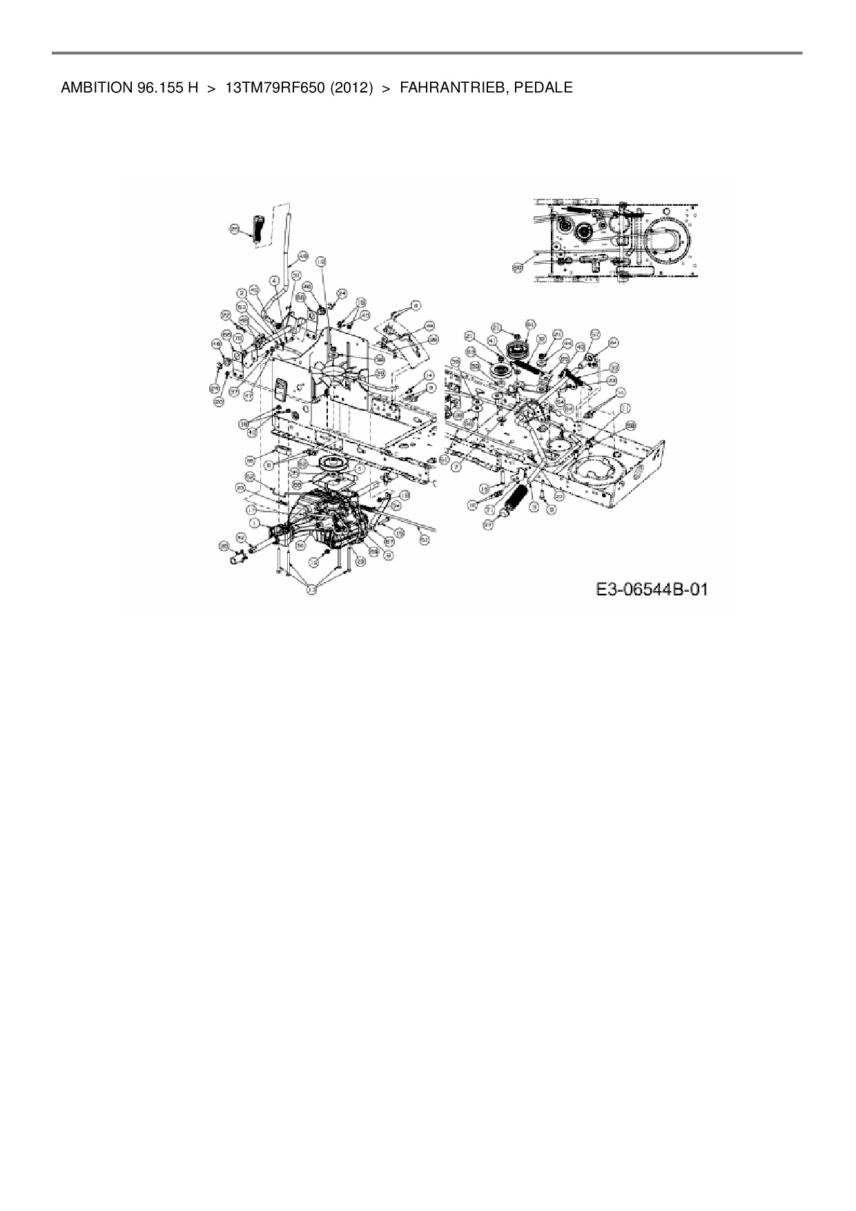 Zeichnung für Wolf-Garten Rasentraktor Ambition 96.155 H mit der Geräte-Artikelnr. 13TM79RF650 ab Baujahr 2012: