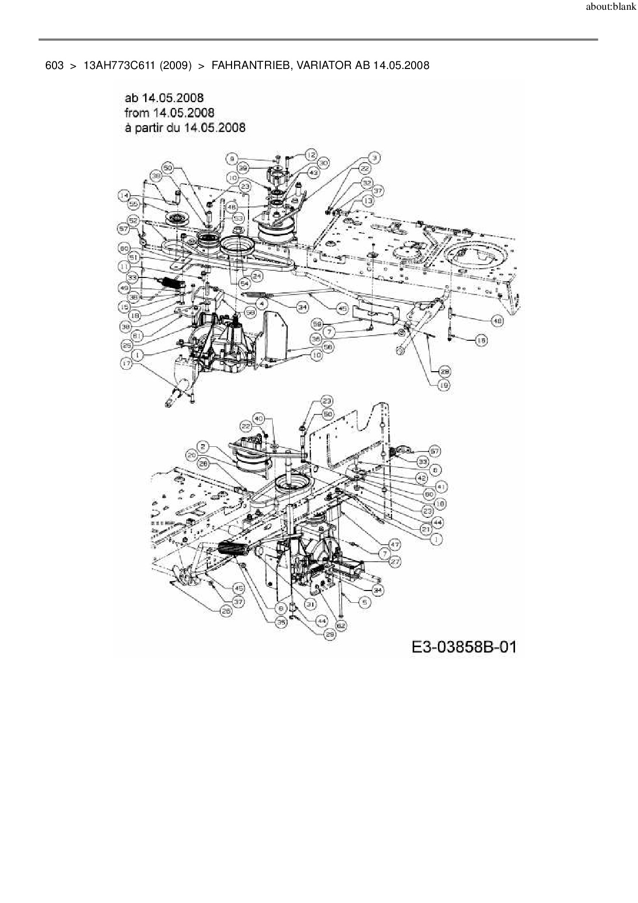 Download Ersatzteil-Zeichnung Lawnflite 603 Zeichnung Fahrantrieb, Variator ab 14.05.2008 (PDF-Format)
