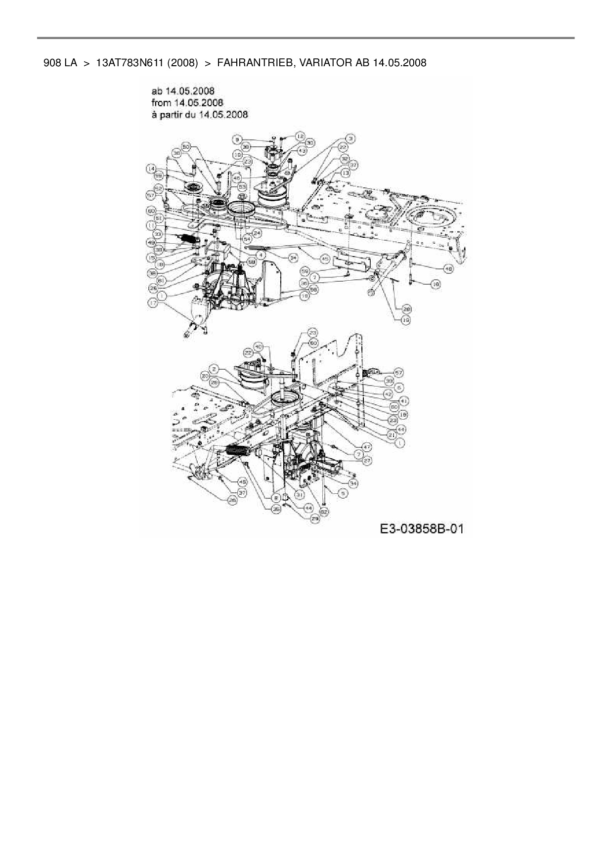 Ersatzteile für Rasentraktor Lawnflite 908 LA aus der Zeichnung Fahrantrieb, Variator ab 14.05.2008: