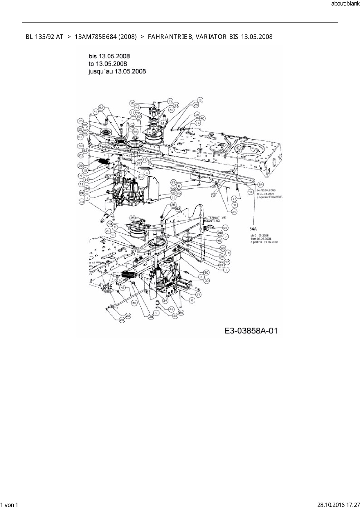 Ersatzteile für Rasentraktor Bolens BL 135/92 AT aus der Zeichnung Fahrantrieb, Variator bis 13.05.2008: