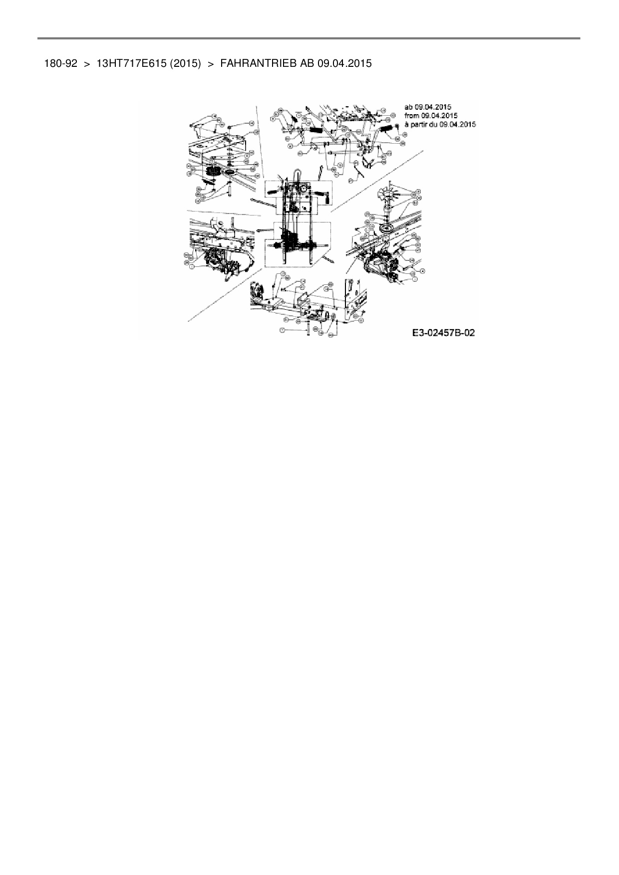 Ersatzteile für Rasentraktor Black Edition 180-92 aus der Zeichnung Fahrantrieb ab 09.04.2015: