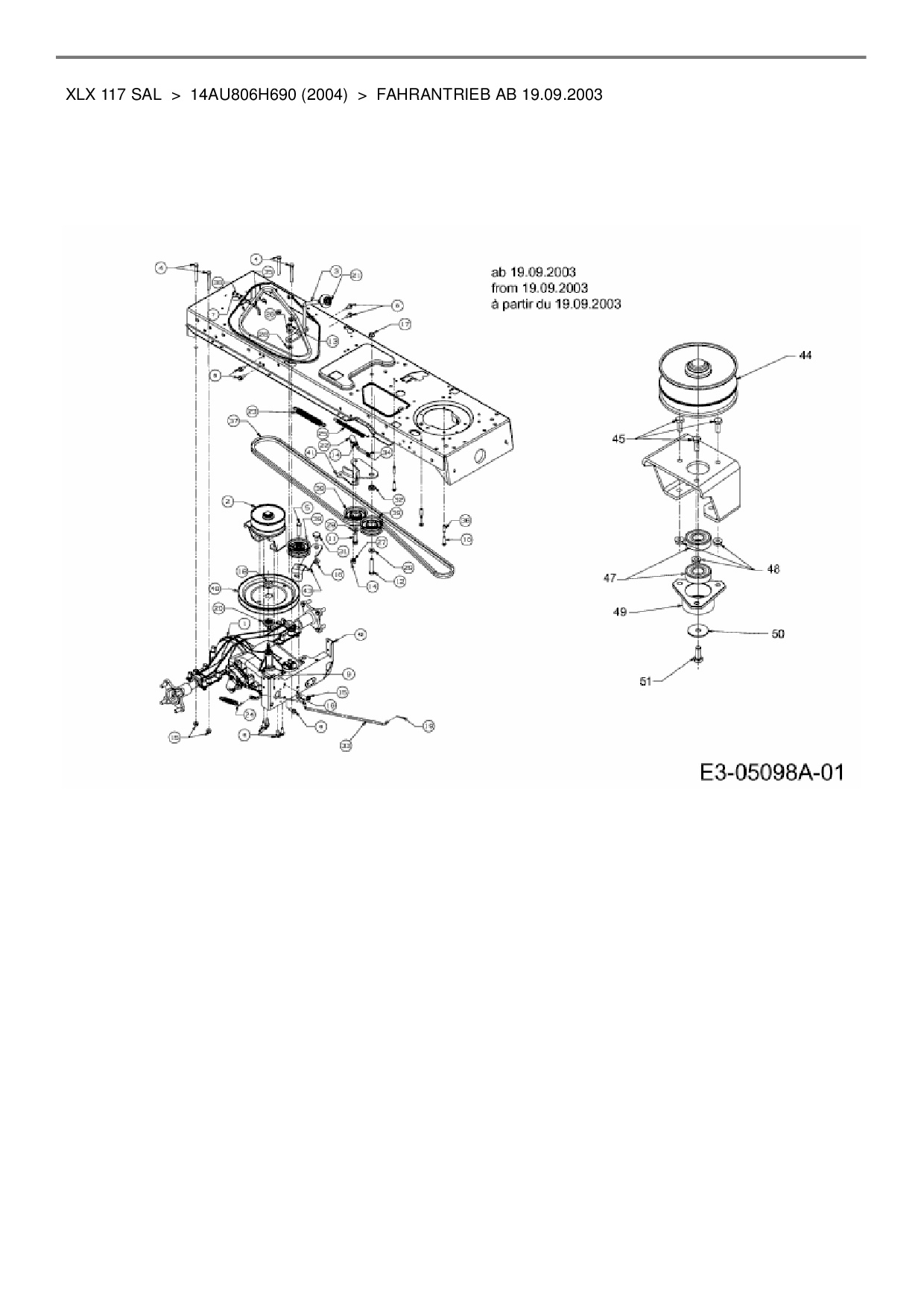 Ersatzteile für Gartentraktor Gutbrod XLX 117 SAL aus der Zeichnung Fahrantrieb ab 19.09.2003: