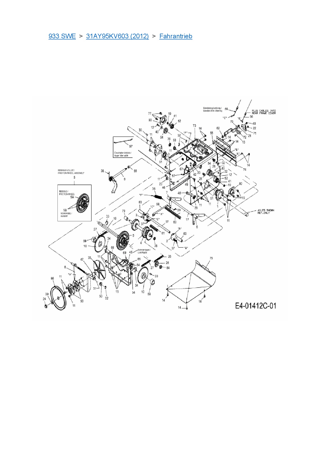 Zeichnung für Cub Cadet Schneefräse 933 SWE mit der Geräte-Artikelnr. 31AY95KV603 ab Baujahr 2012: