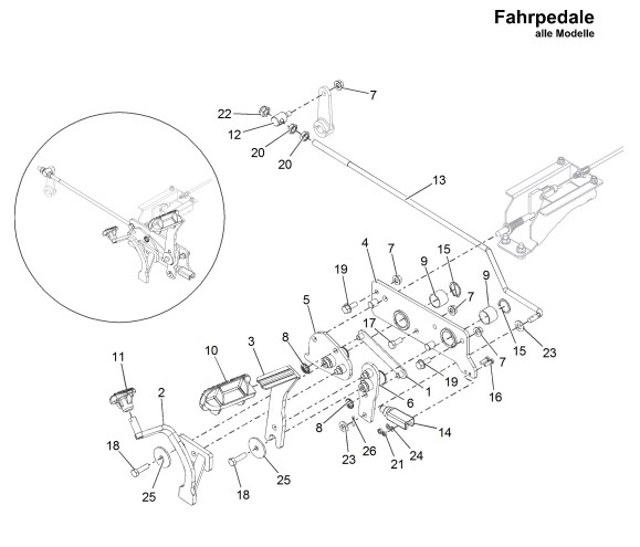 Zeichnung von ECHO-Motorgeräte Rasentraktoren A-Serie A-416KAWA-4WD - 2016-06 A-416KAWA-4WD ab Juni 2016 Fahrpedale: