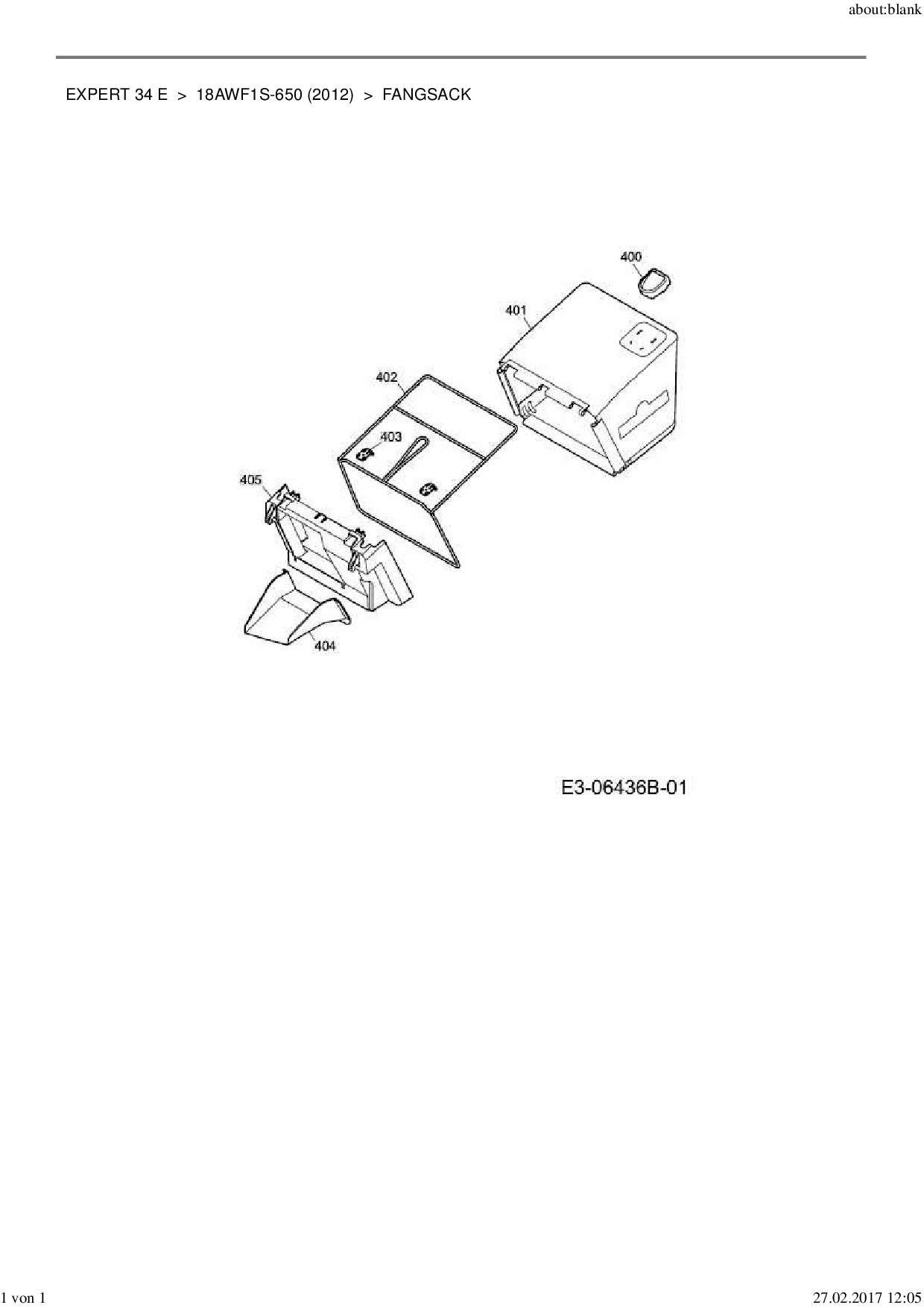 Ersatzteile für Elektromäher Wolf-Garten Expert Expert 34 E aus der Zeichnung Fangsack: