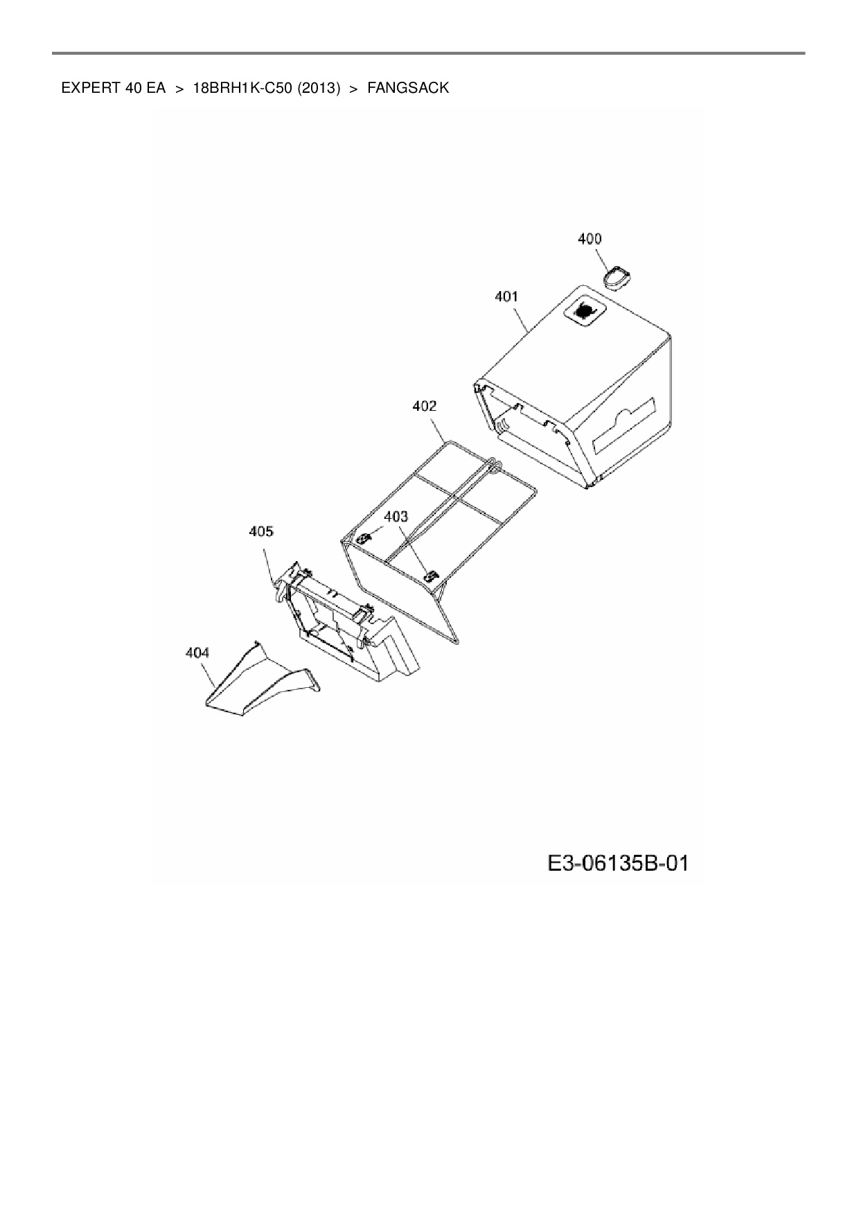Ersatzteile für Elektromäher mit Antrieb Wolf-Garten Expert Expert 40 EA aus der Zeichnung Fangsack: