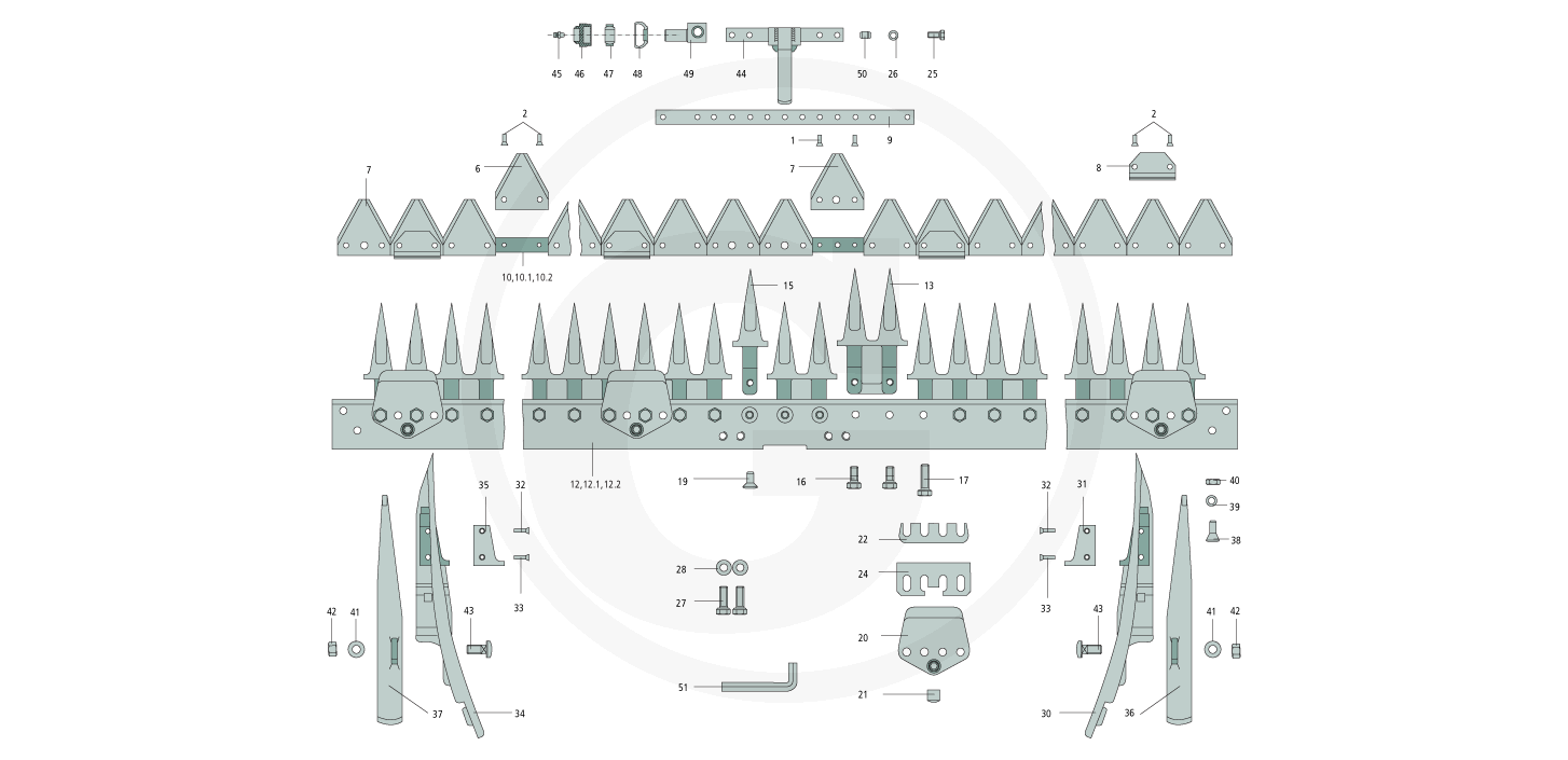 Ab hier finden Sie alle verfügbaren ESM Ersatzteile vom Fingerbalken Mittelschnitt (Schwingenantrieb 17mm Bolzen) für Agria 5500: