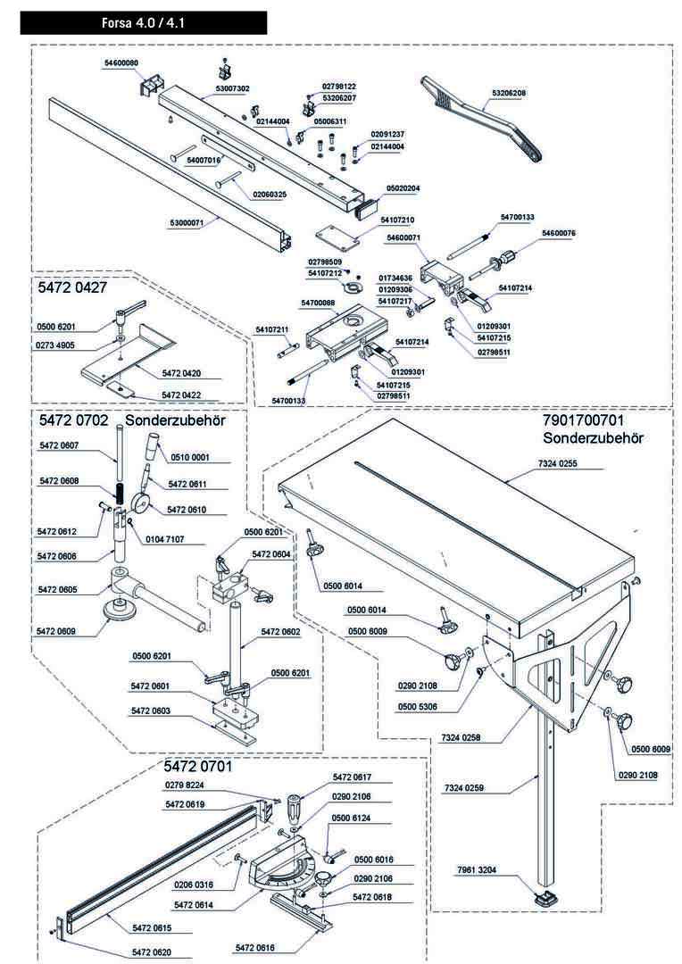 Ersatzteile für Scheppach Formatkreissäge Forsa 4 Kity (Gerätenr. 54720901) - Forsa4.0/4.1 ab 10/2016