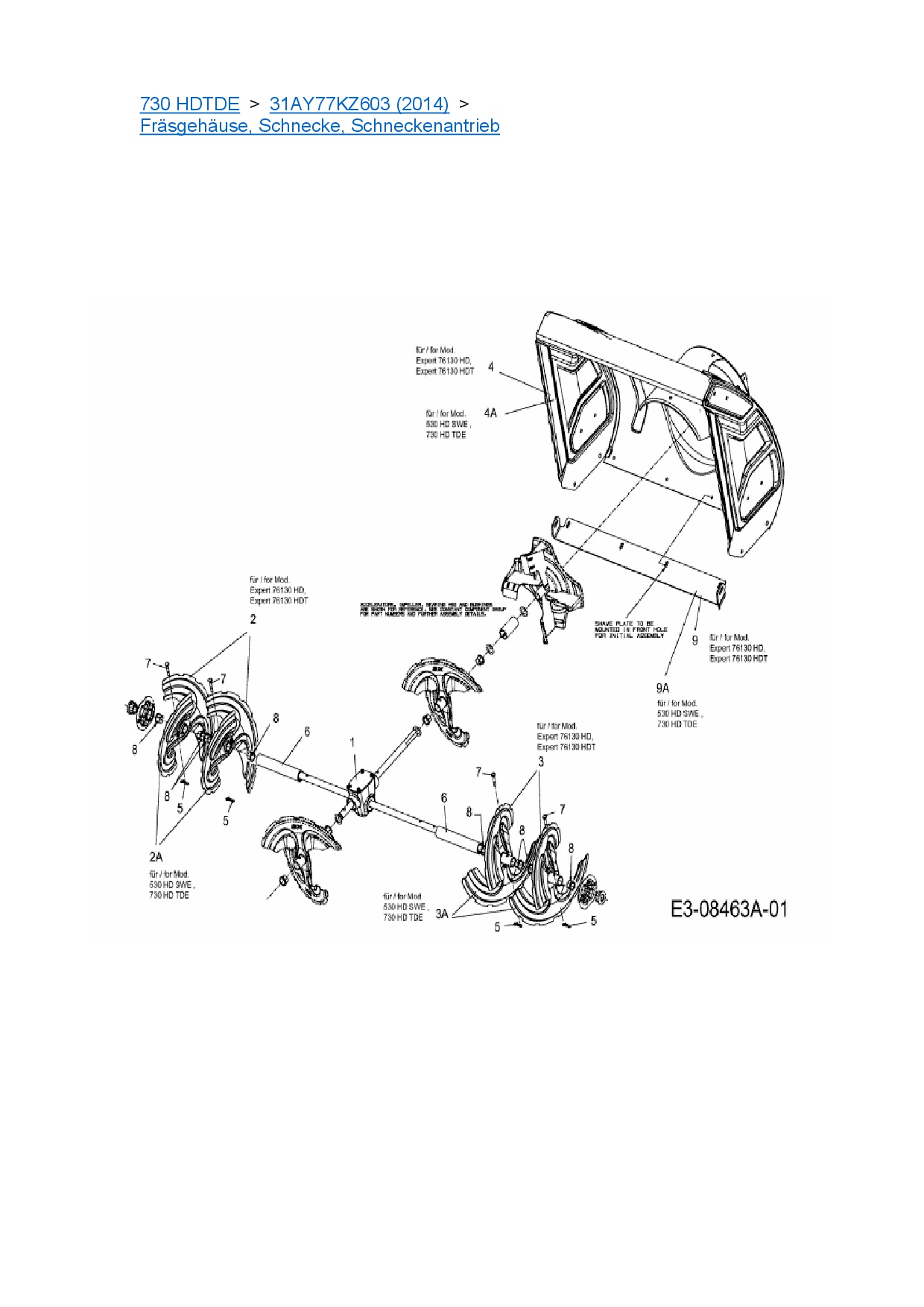 Ersatzteile für Schneefräse Cub Cadet 730 HDTDE aus der Zeichnung Fräsgehäuse, Schnecke, Schneckenantrieb: