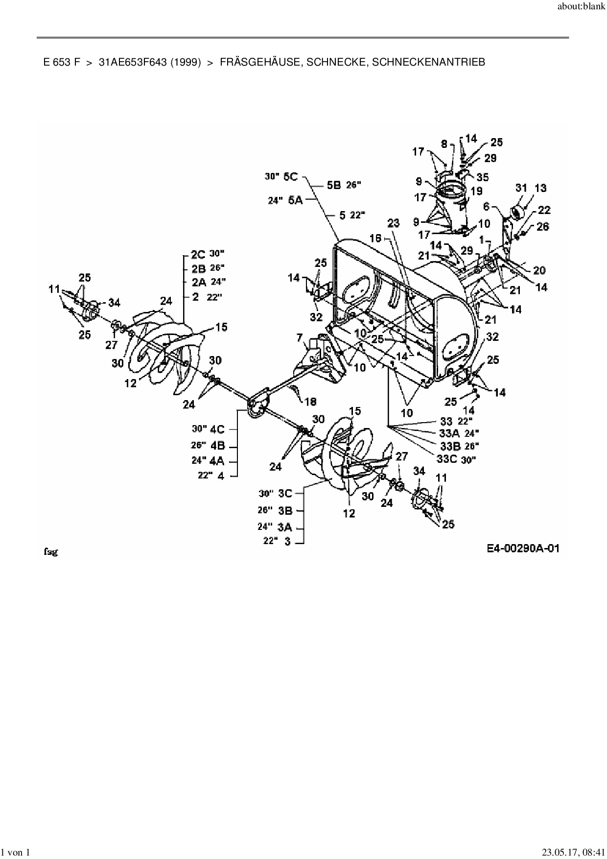 Ersatzteile für Schneefräsen Yard-Man E 653 F aus der Zeichnung Fräsgehäuse, Schnecke, Schneckenantrieb:
