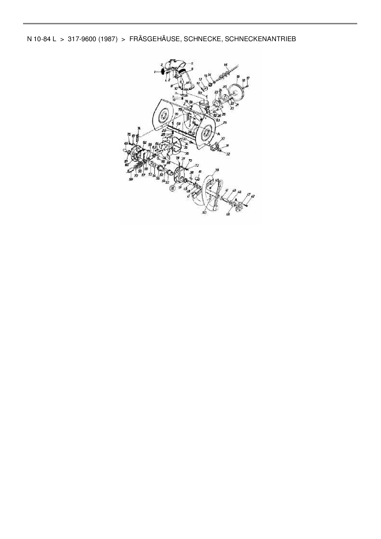 Ersatzteile für Schneefräse Blizzard N 10-84 L aus der Zeichnung Fräsgehäuse, Schnecke, Schneckenantrieb: