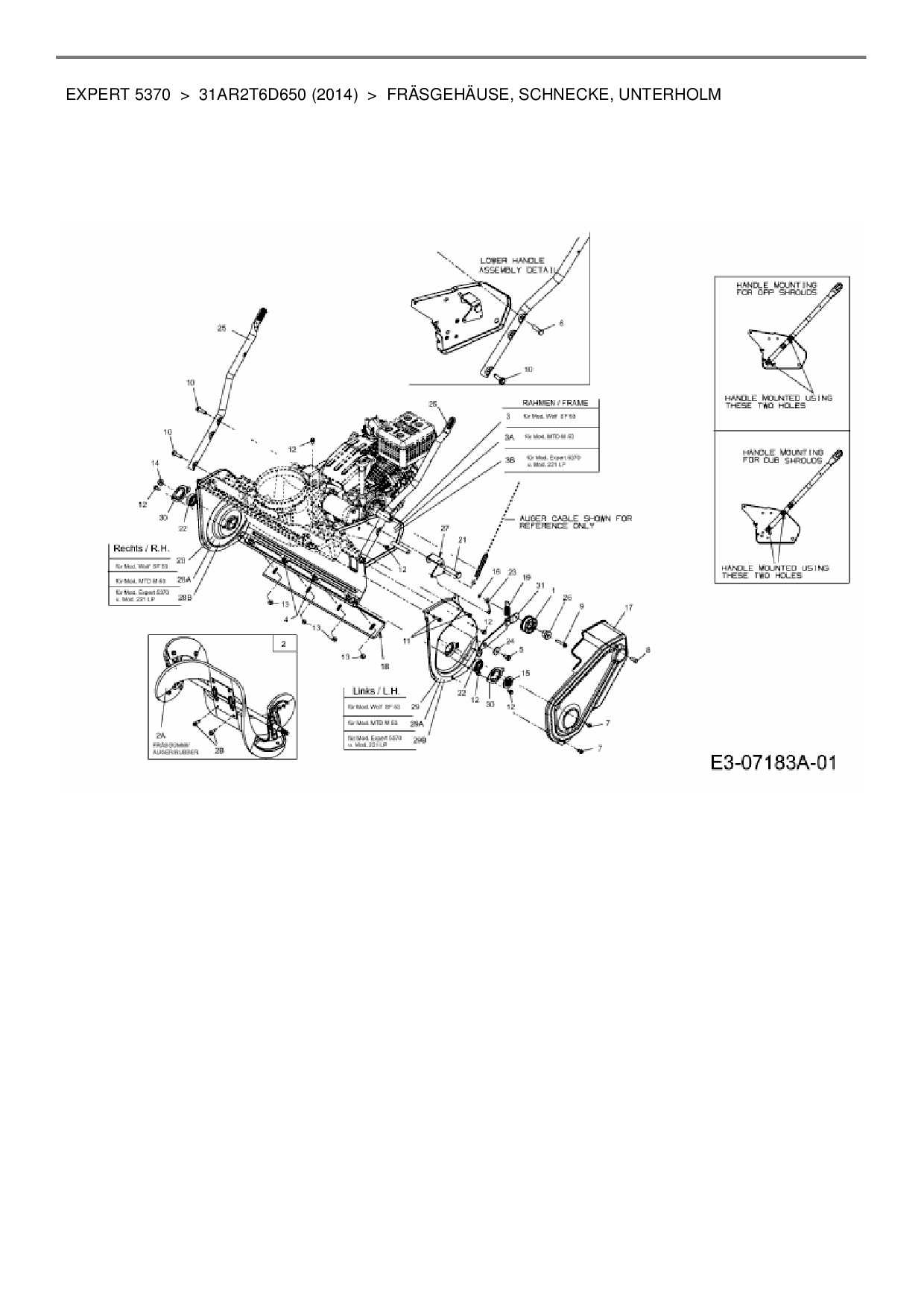 Ersatzteile für Schneefräse Wolf-Garten Expert Expert 5370 aus der Zeichnung Fräsgehäuse, Schnecke, Unterholm: