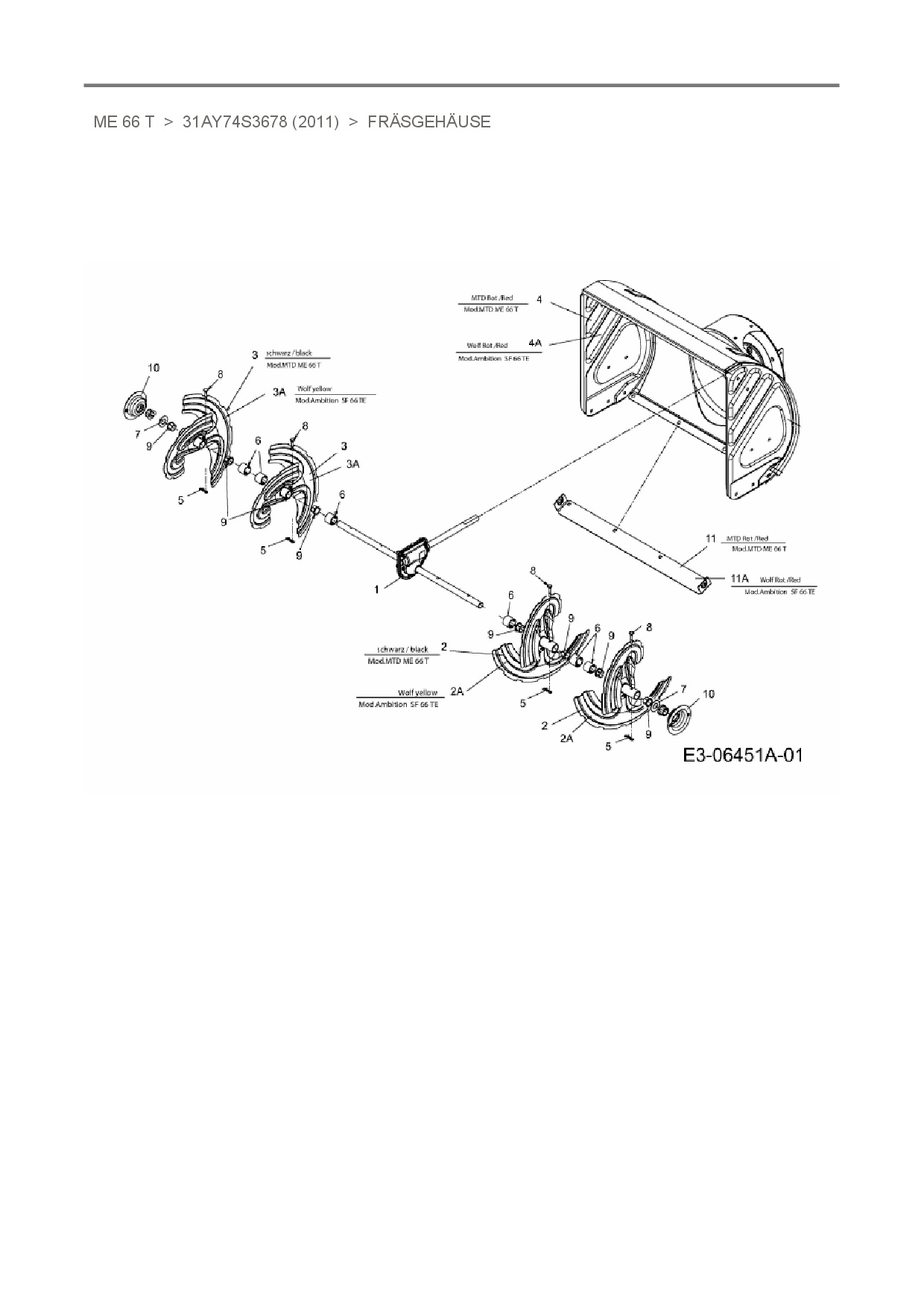 Ersatzteile für Schneefräse MTD ME 66 T aus der Zeichnung Fräsgehäuse: