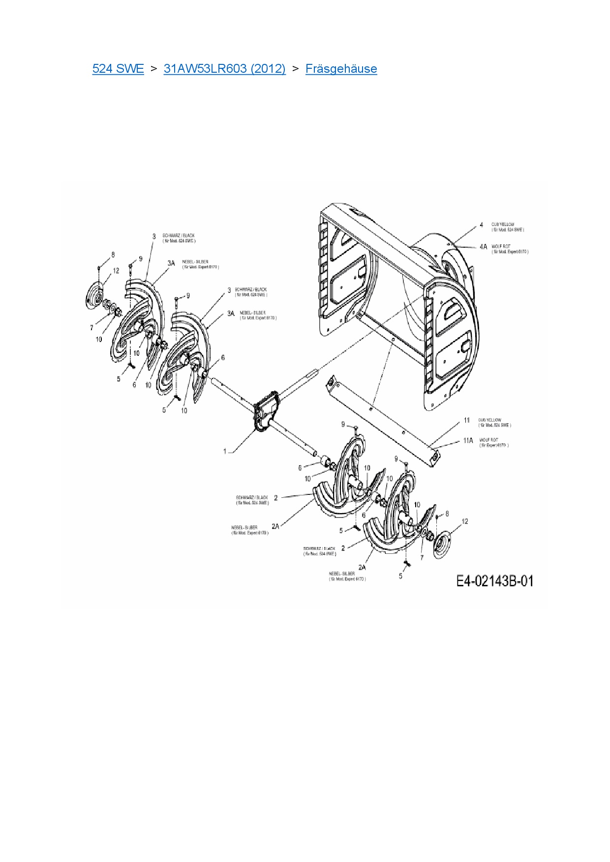 Zeichnung für Cub Cadet Schneefräse 524 SWE mit der Geräte-Artikelnr. 31AW53LR603 ab Baujahr 2012: