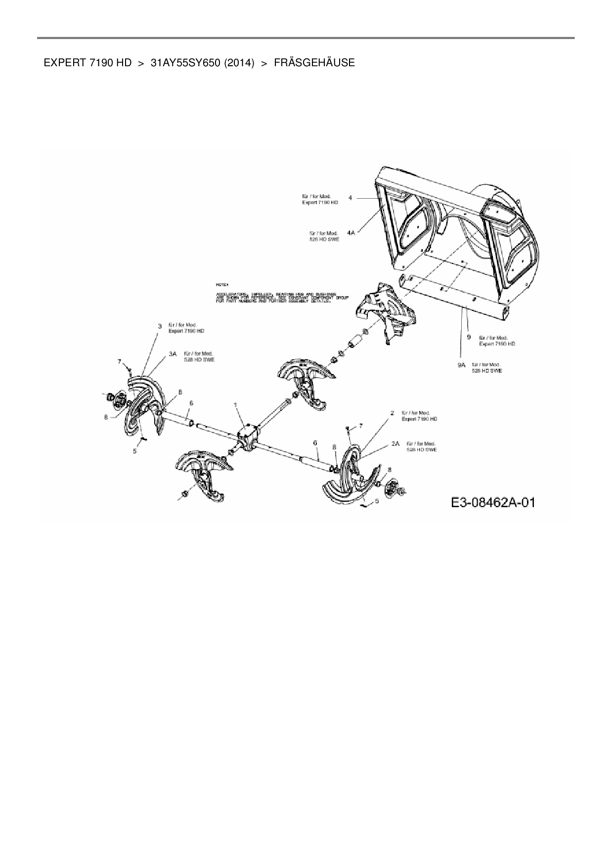 Ersatzteile für Schneefräse Wolf-Garten Expert Expert 7190 HD aus der Zeichnung Fräsgehäuse: