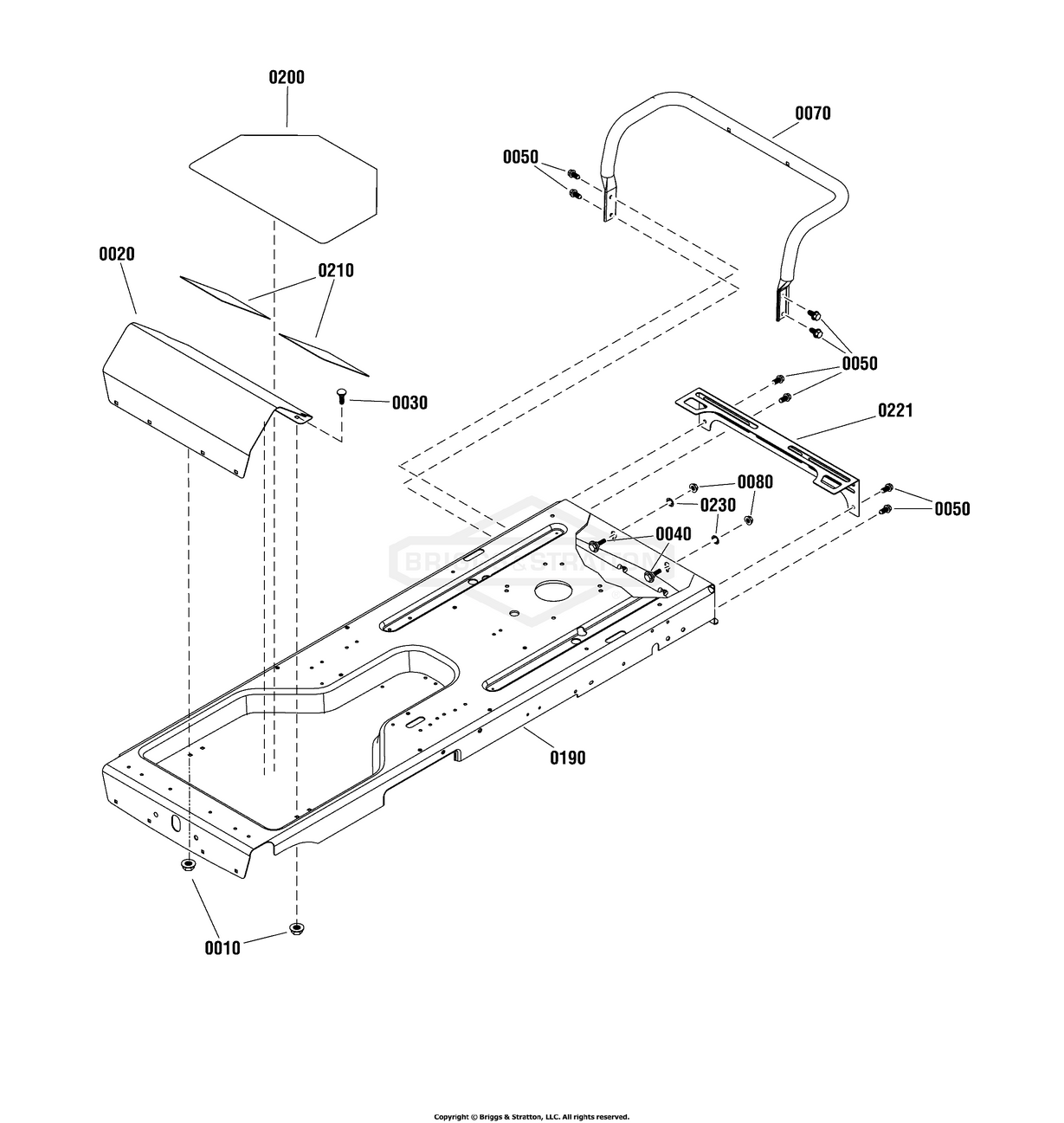 Zeichnung Snapper 2691137-01 - ZT21546, 46" 21.5 HP ZT Twin Stick Rider 200Z Series - Zeichnungsgruppe Frame Group, 1 Bar W/Foot Rest W/O Susp.:
