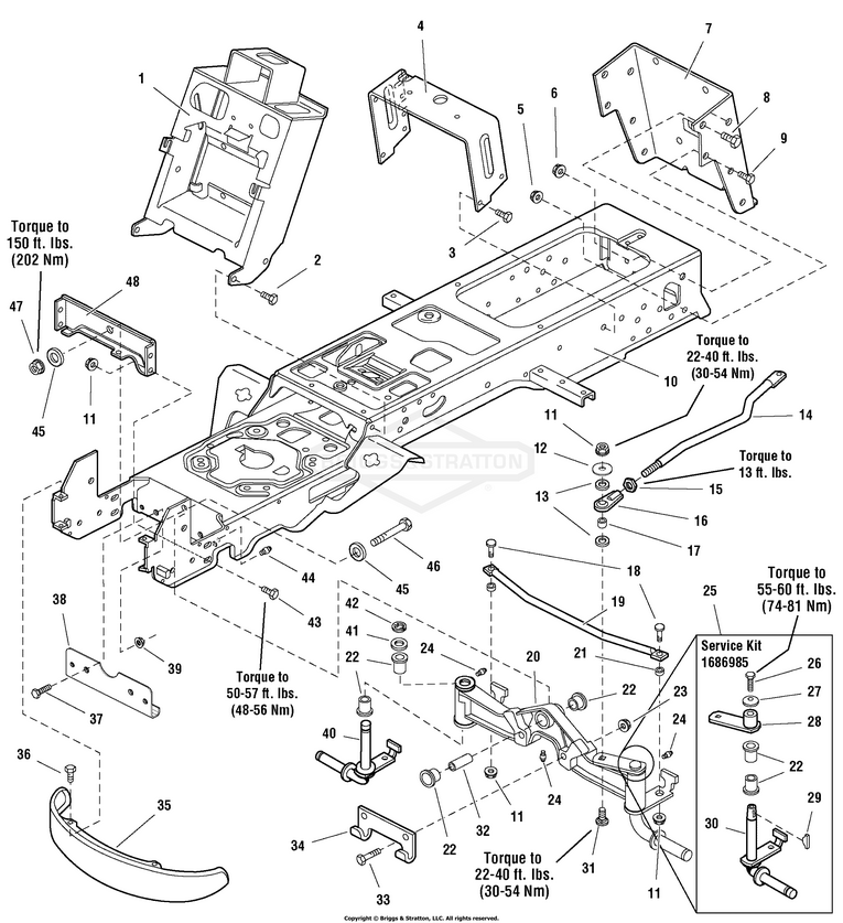 Hier finden Sie alle Ersatzteile von Snapper 1694621 - GT2354, 54" 23 HP Hydro Drive Garden Tractor der Zeichnungsgruppe Frame Group - Manual Steering: