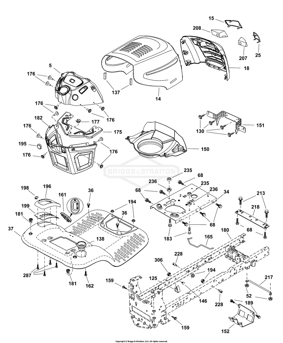 Hier finden Sie alle Ersatzteile von Snapper 2691569-00 - 960440015,ST1942,42" 19 Gross HP Hydro Drive Lawn Tractor der Zeichnungsgruppe Frame & Hood Group: