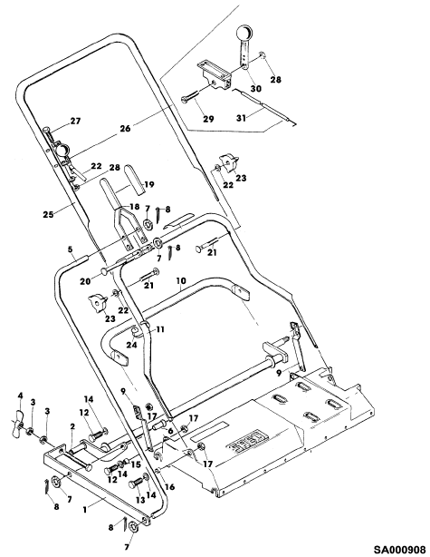 Zeichnung Sabo Vertikutierer Benzin Vertikutierer 45-210 EDV-NR.SA287 Führungsholm, Starter, Schaltung: