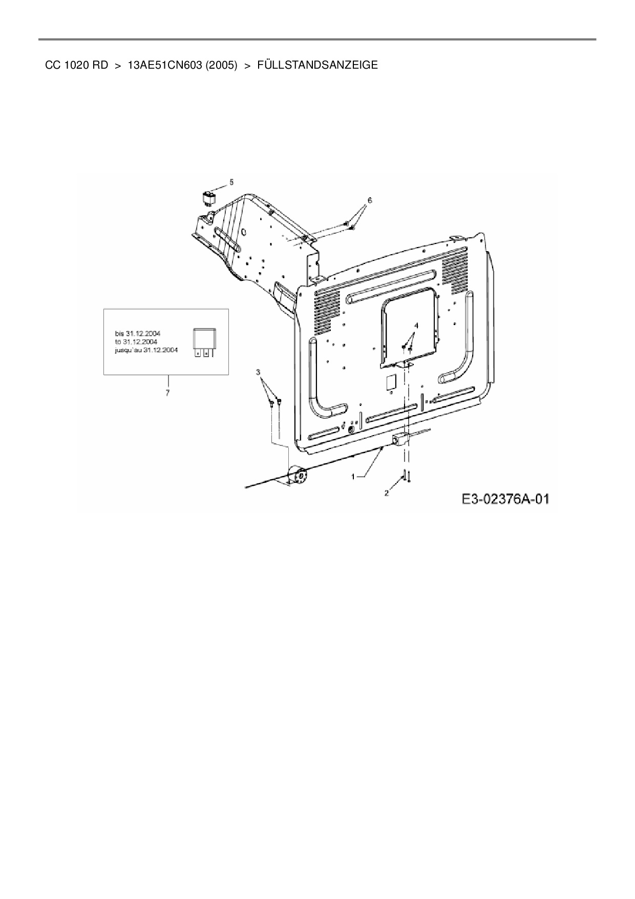 Ersatzteile für Rasentraktor Cub Cadet CC 1020 RD aus der Zeichnung Füllstandsanzeige:
