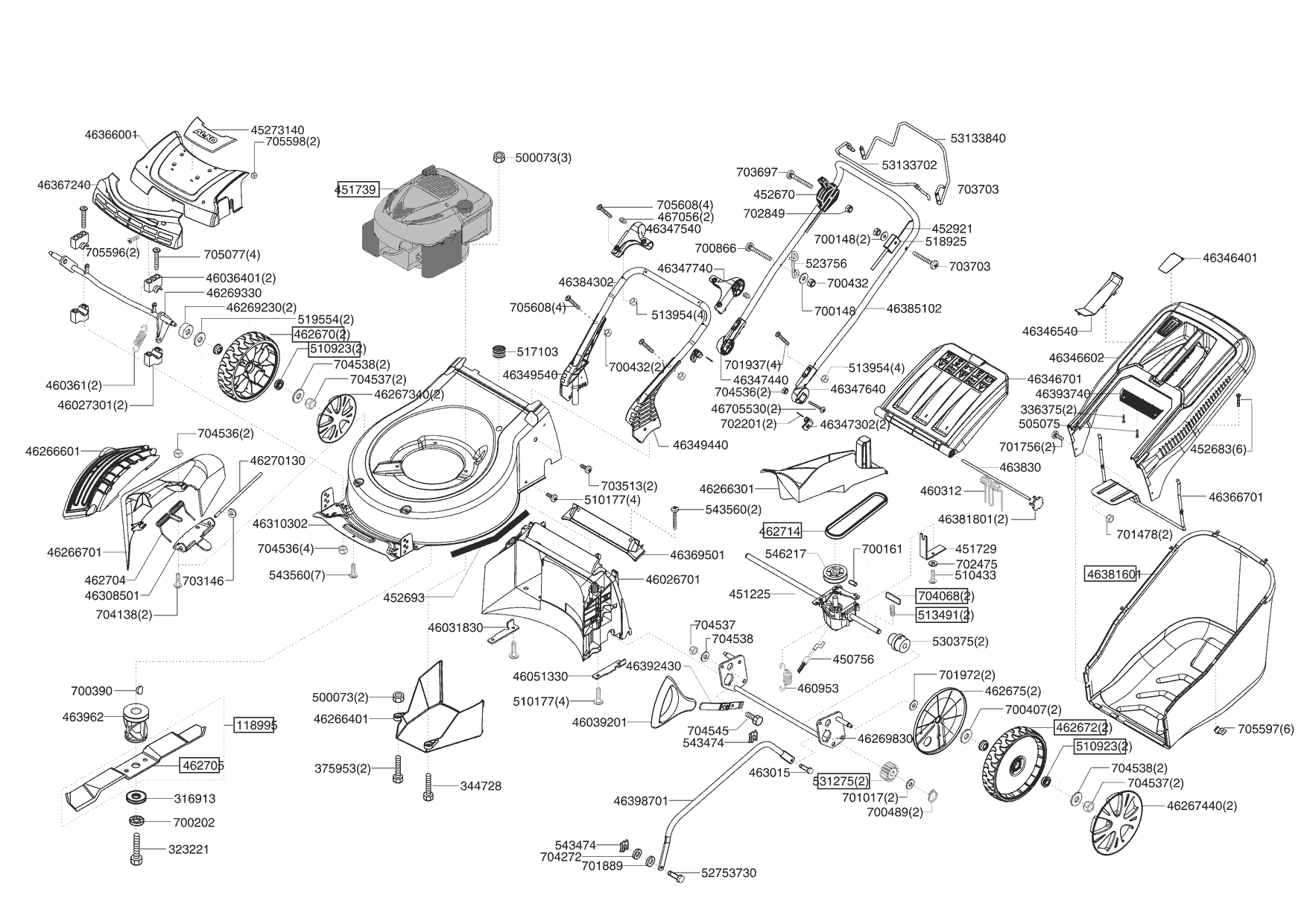 GASVERSTELLUNG T60 1290 B&S R9005 für Powerline Benzinrasenmäher 5200 BR # Pos. 452670 aus Zeichnung 1