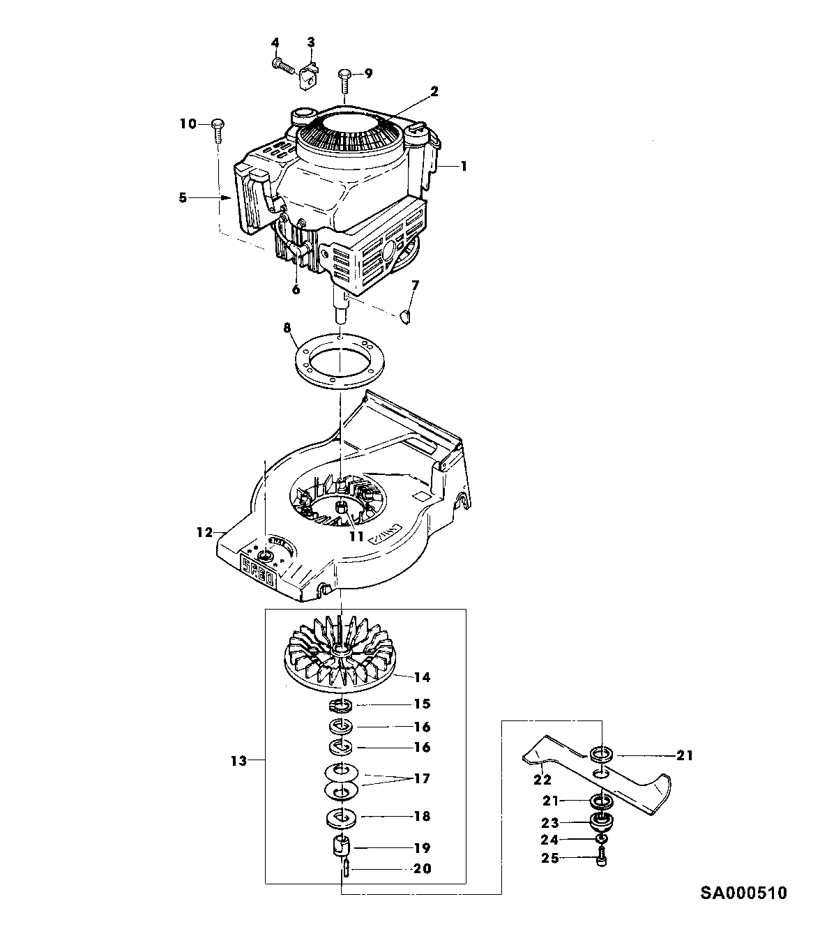 Ersatzteile für Sabo Rasenmäher Benzin-Rasenmäher 43 Spirit PC4396 90 43-4 Economy Turbostar™ EDP-Nr. SA195 mit 4-Takt-Motor B und S und ohne Antrieb