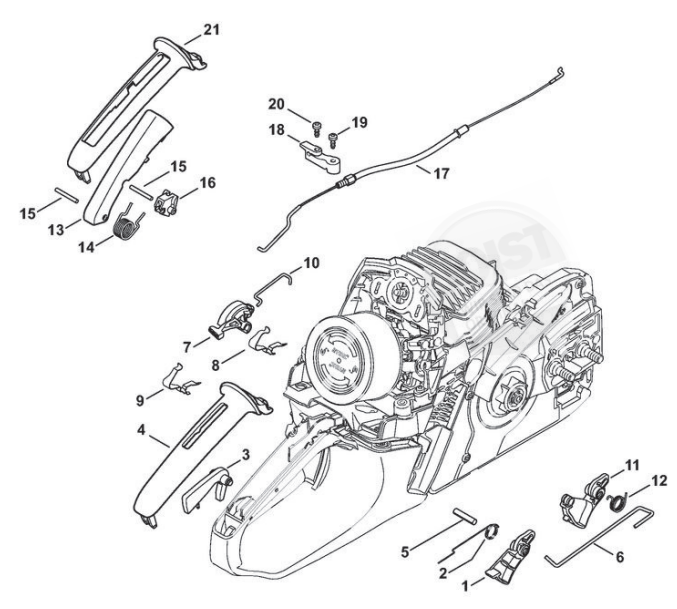 Hier finden Sie alle Ersatzteile von Stihl Benzin-Motorsägen MS 291 C-BEQ der Zeichnungsgruppe Gasbetätigung: