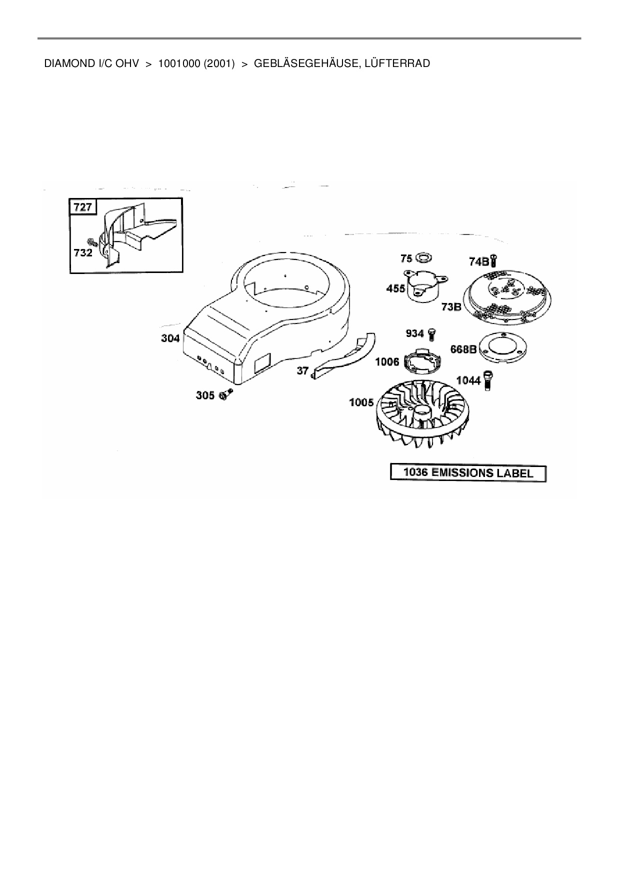 Ersatzteile für Benzinmotor Briggs&Stratton Wolf-Garten Diamond I/C OHV aus der Zeichnung Gebläsegehäuse, Lüfterrad: