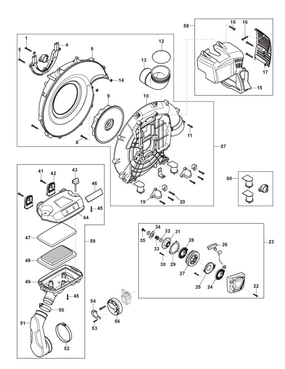 Gebläsegehäuse, Luftfilter, Set Kupplung (1)
