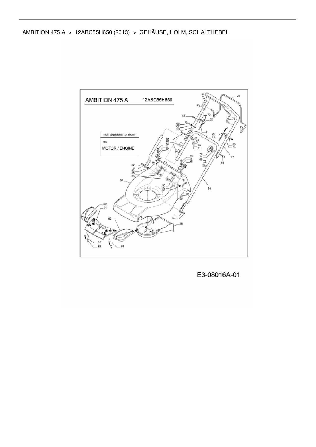 Download Ersatzteil-Zeichnung Wolf-Garten Ambition 475 A Zeichnung Gehäuse, Holm, Schalthebel (PDF-Format)