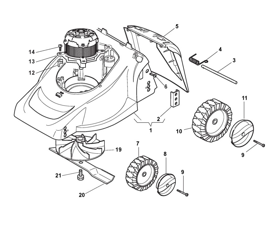 Hier finden Sie alle Ersatzteile von Castelgarden Elektrorasenmäher EU 350 (Geräte ID 297040006/11) ab 2012 aus der Zeichnung Gehäuse, Rad und Radkappe: